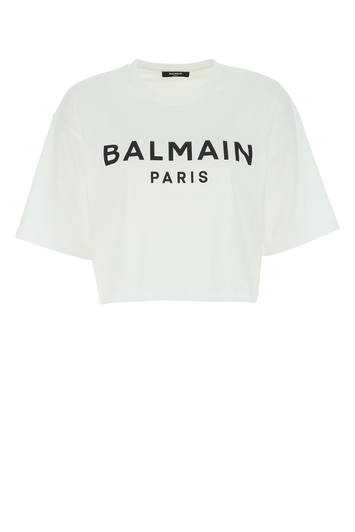Short-cut t-shirt realized in pure cotton characterized by contrasting printed logo at the front.