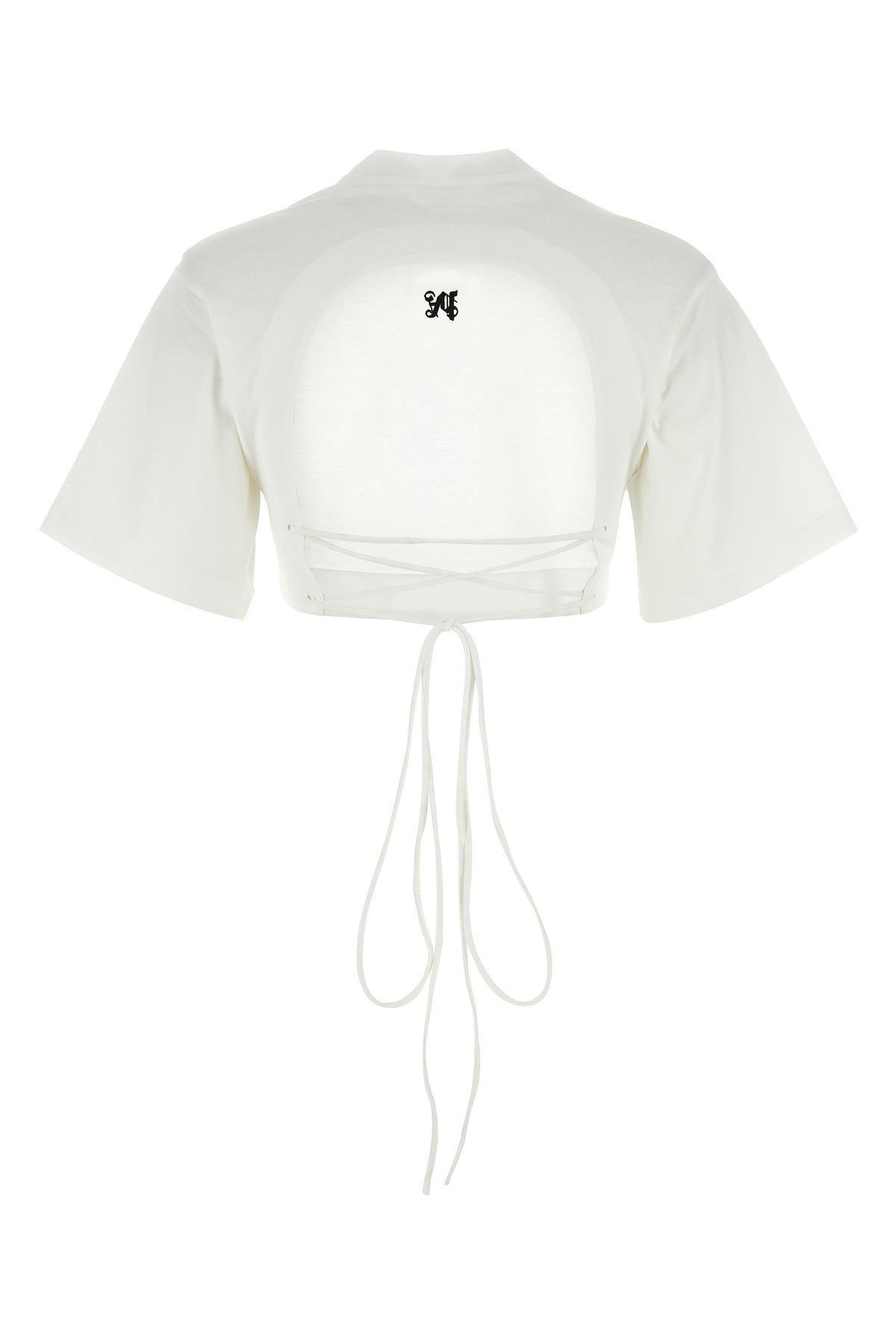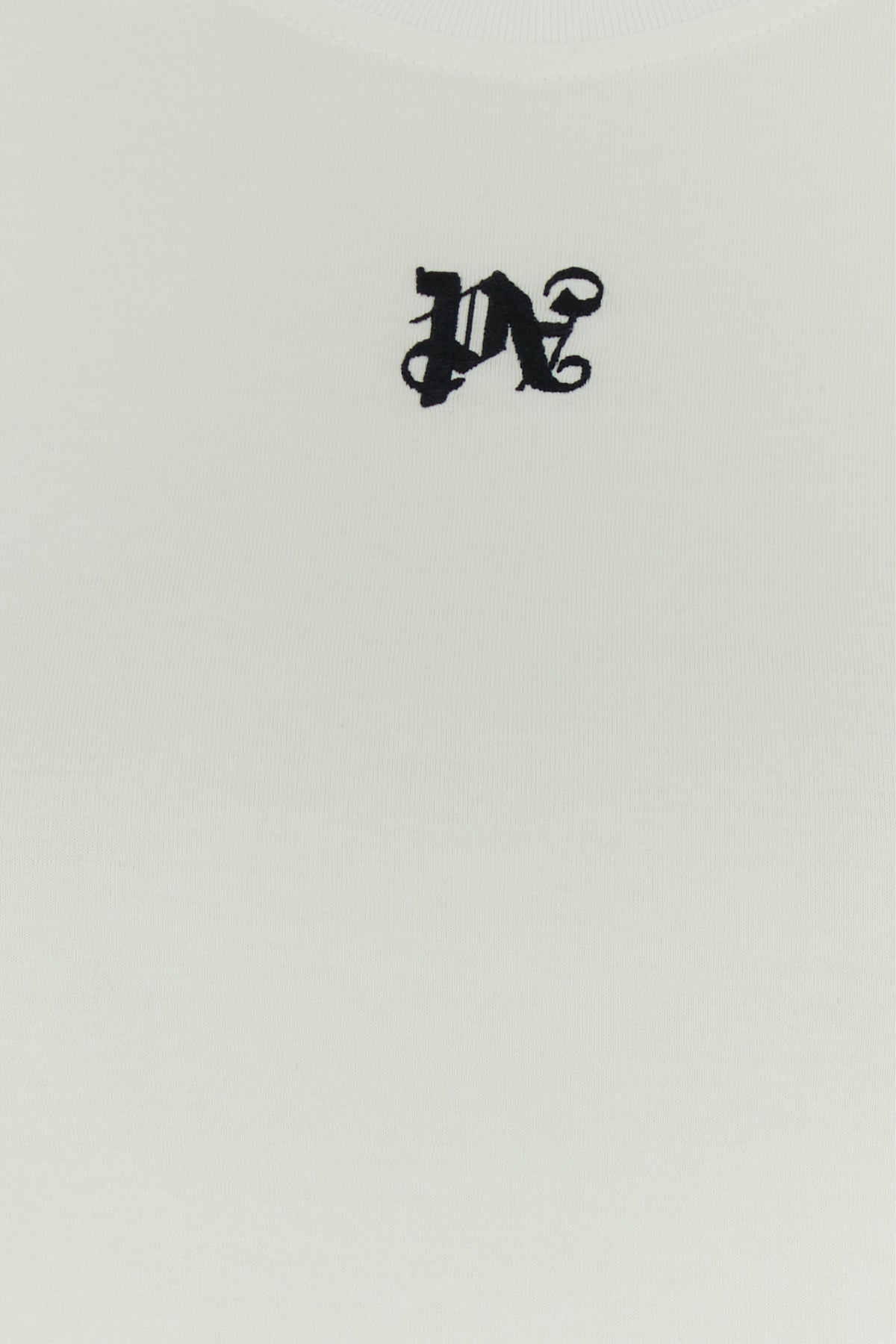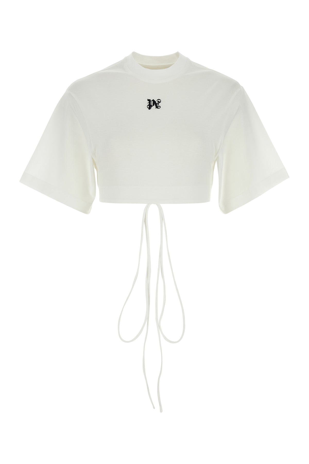 Cropped-cut t-shirt realized in pure cotton characterized by contrasting Monogram embroidery on the chest.
