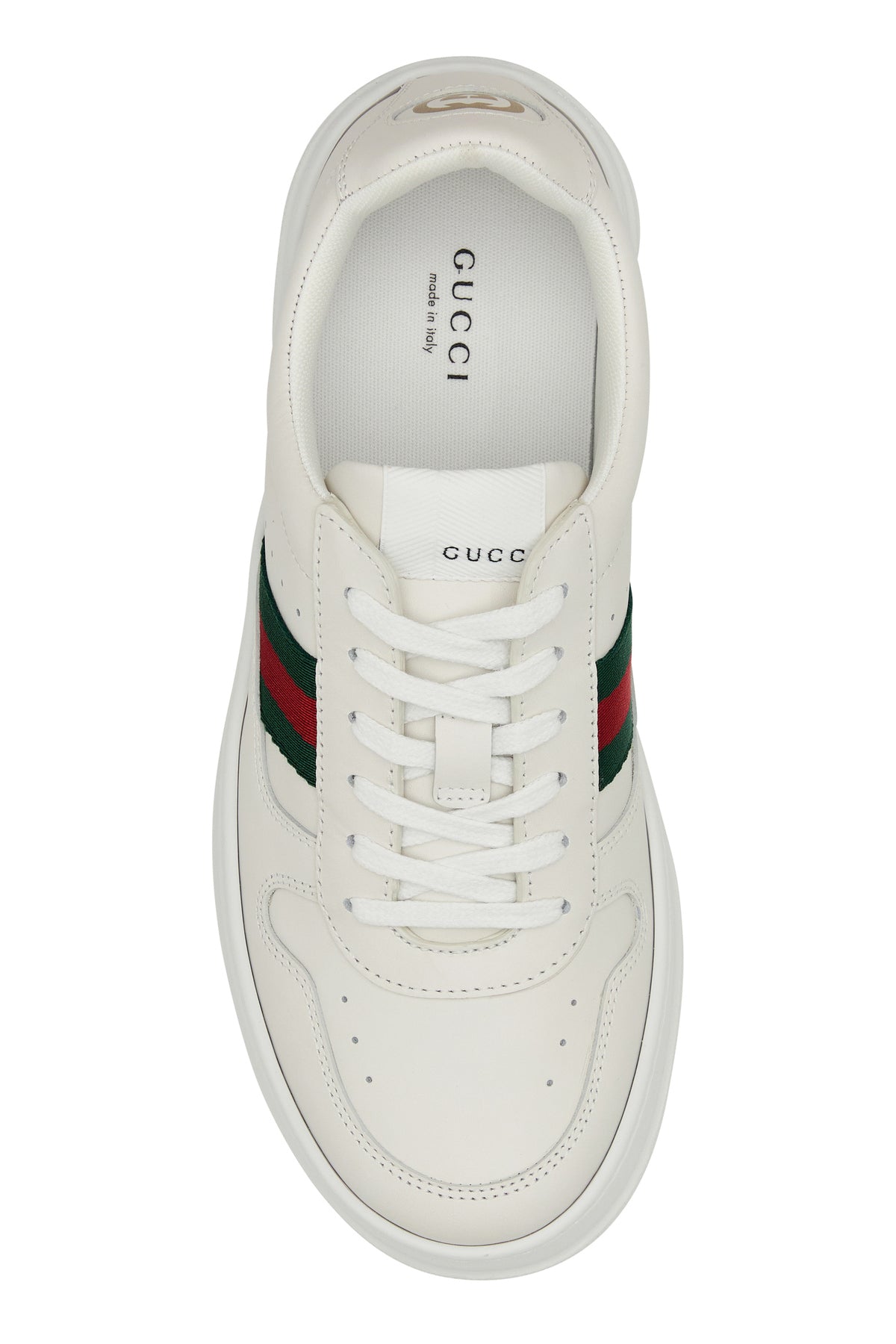 Sneakers realized in leather characterized by GG print on the heel and embossed logo at the back enriched by Web patch on the sides.