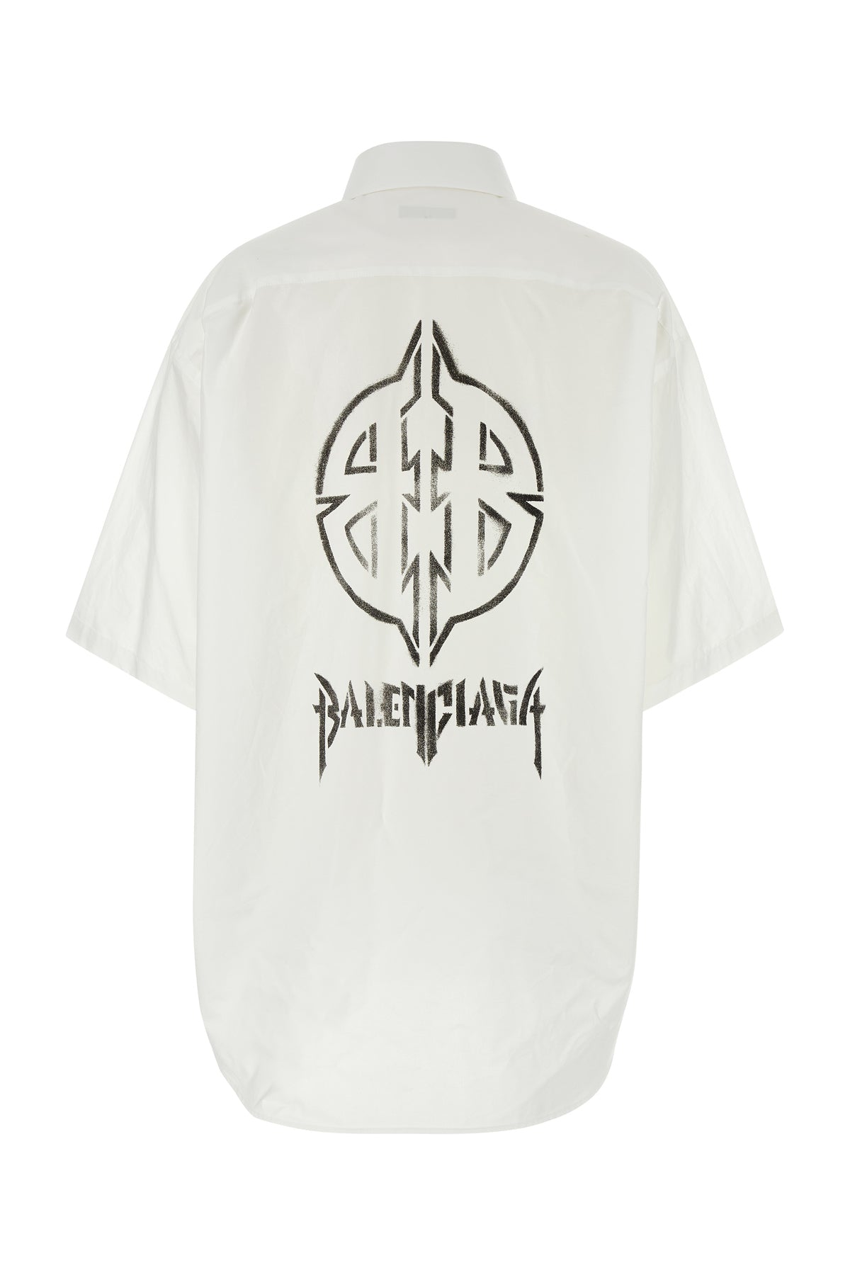 Oversize short-sleeves shirt realized in pure cotton poplin characterized by contrasting logoed print at the back.