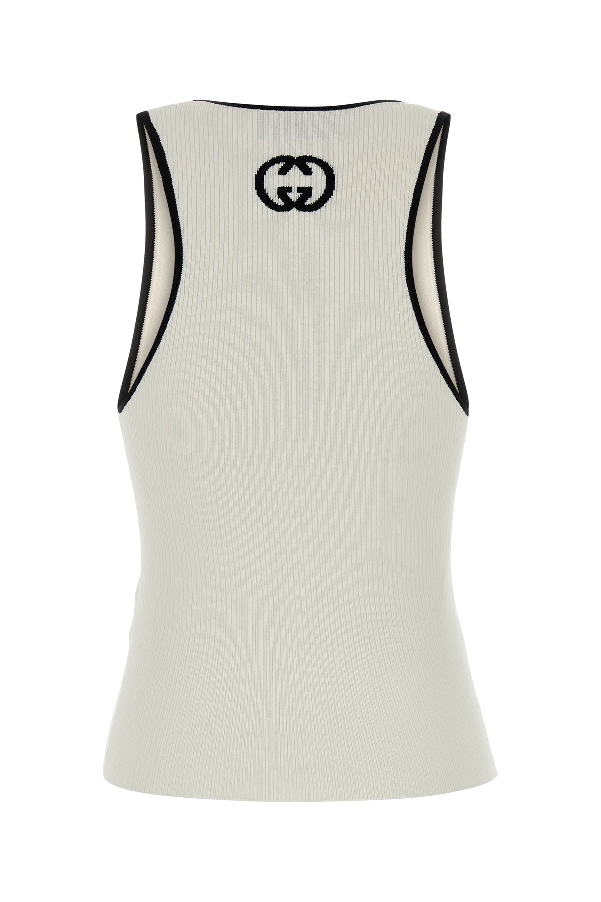 Tank top realized in viscose blend characterized by GG embroidery at the back.