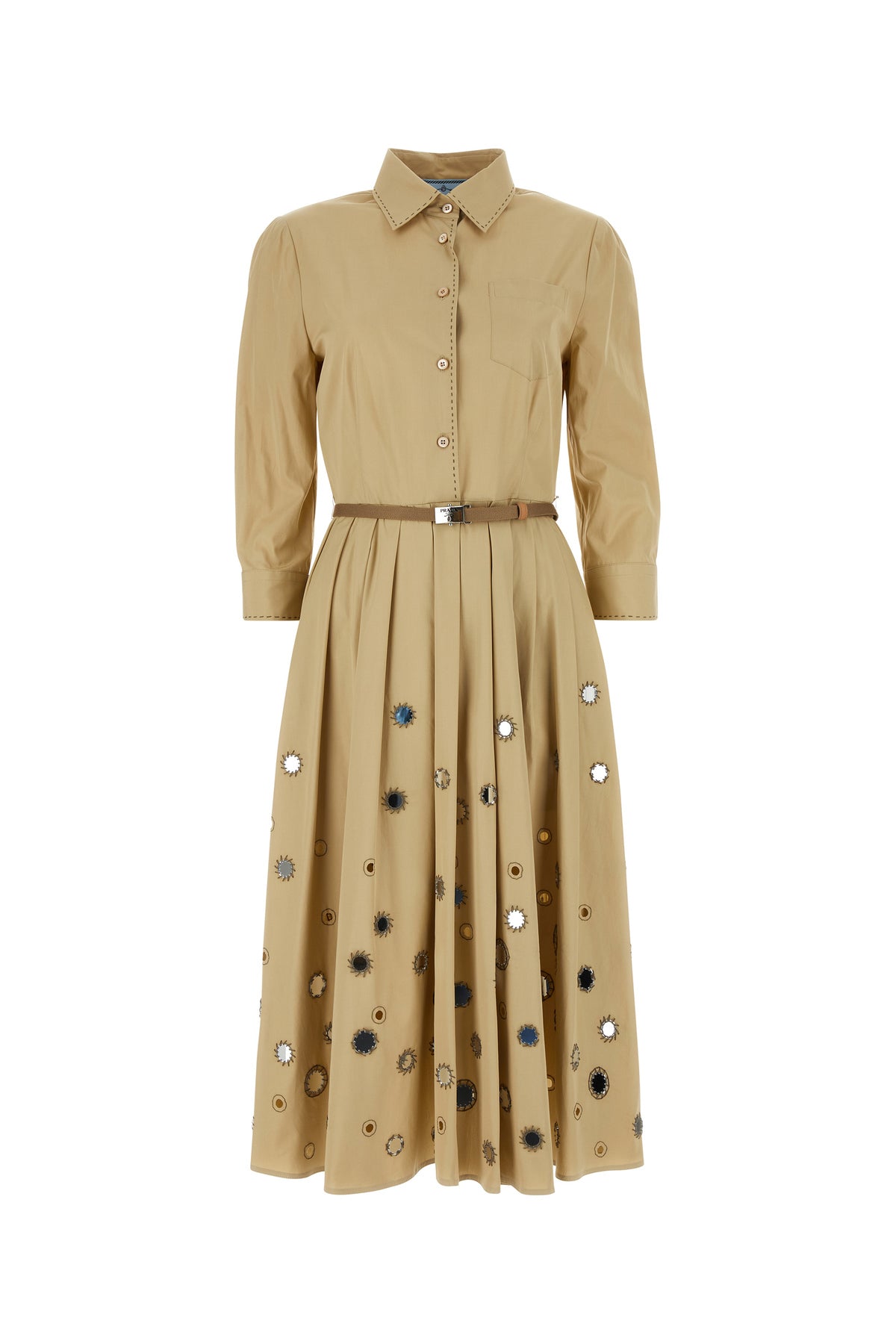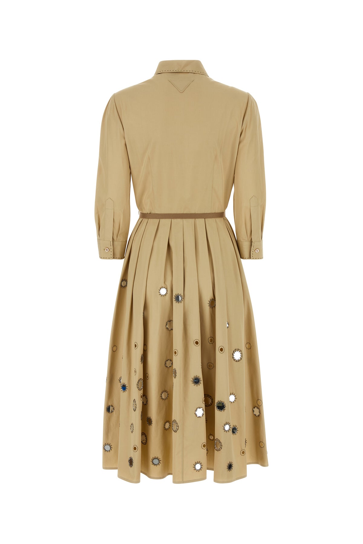 Abito chemisier realizzato in puro cotone caratterizzato da particolari dettagli cut-out sulla parte frontale e sul retro arricchito da particolari paillettes sulla parte frontale e sul retro .