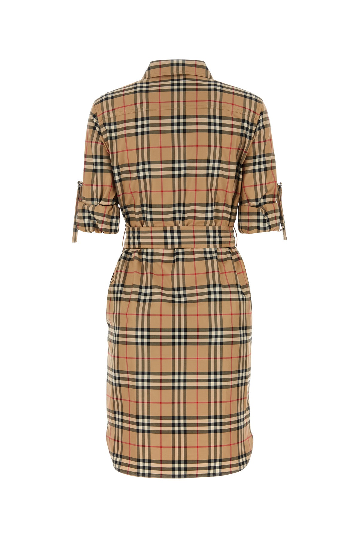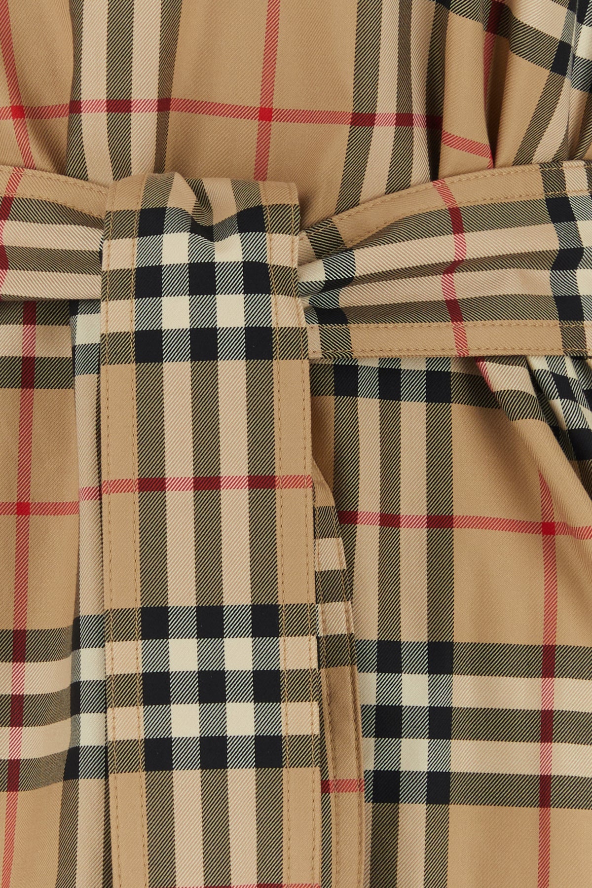Abito chemisier realizzato in puro cotone caratterizzato da ricamo Burberry Check su tutta la superficie arricchito da cintura amovibile da annodare in vita.