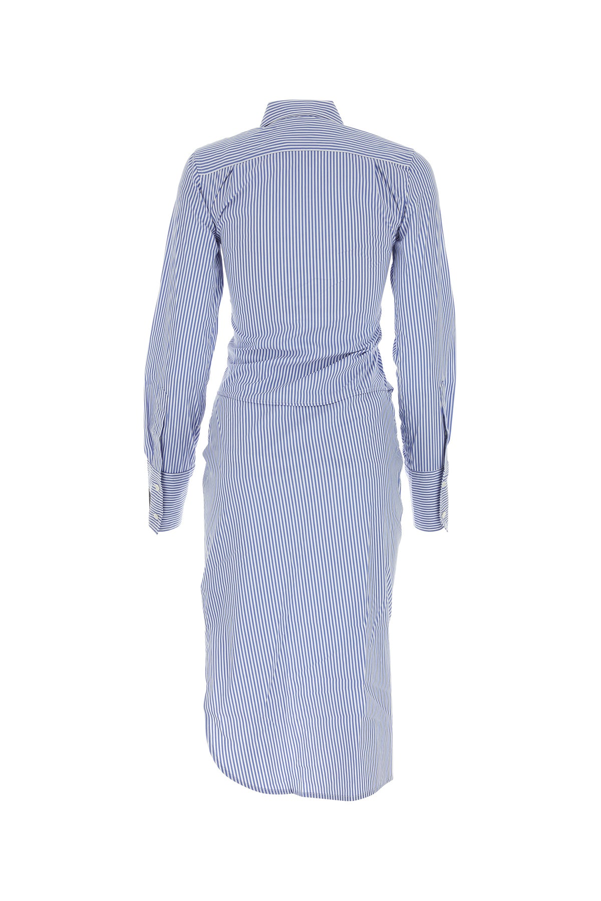 Abito chemisier realizzato in misto cotone stretch caratterizzato da stampa a righe su tutta la superficie arricchito da etichetta logata sul polsino.