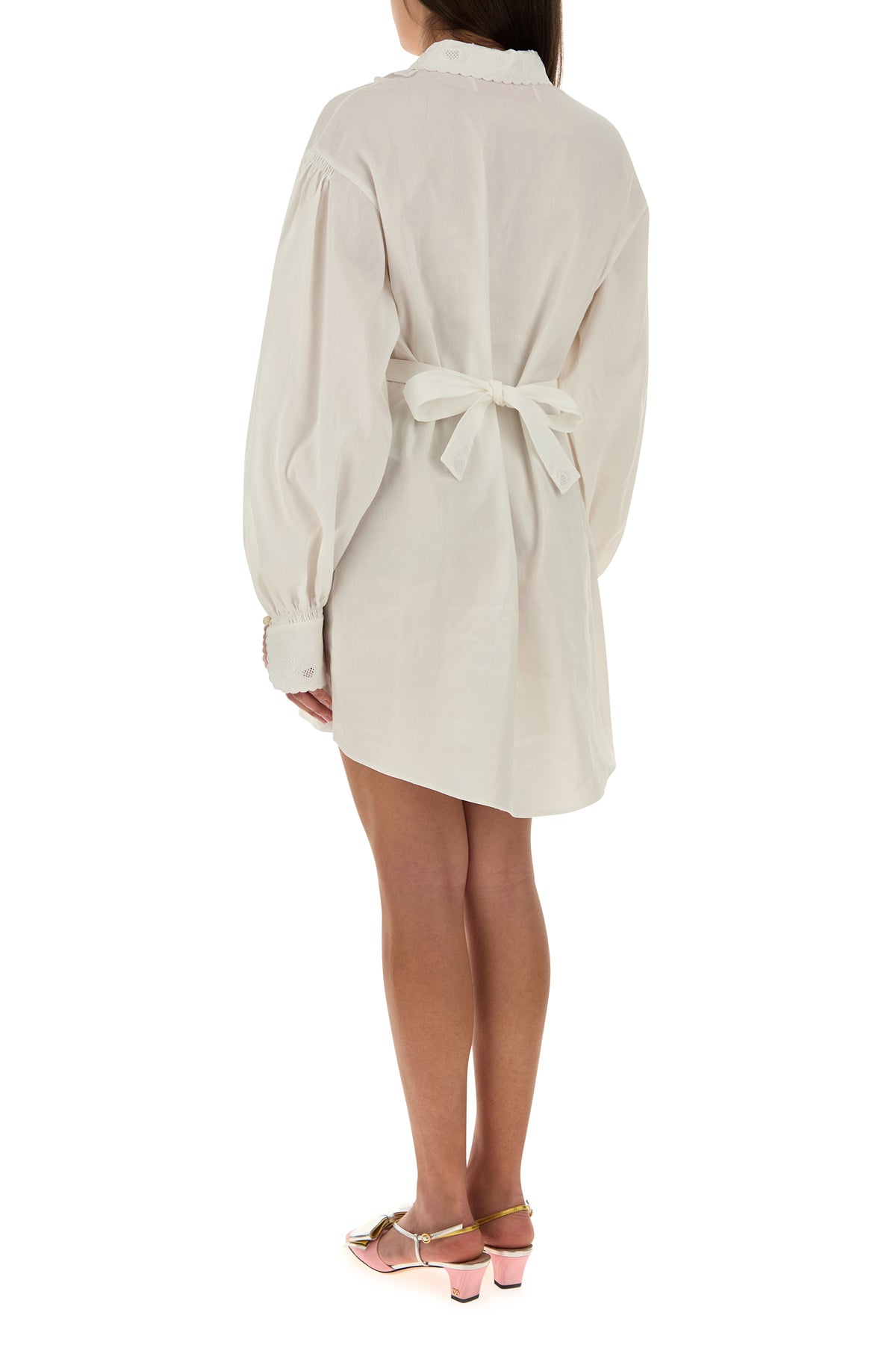 Abito chemisier realizzato in misto cotone caratterizzato da particolari ricami tonali sul colletto punte corte e sui polsini con bottone.