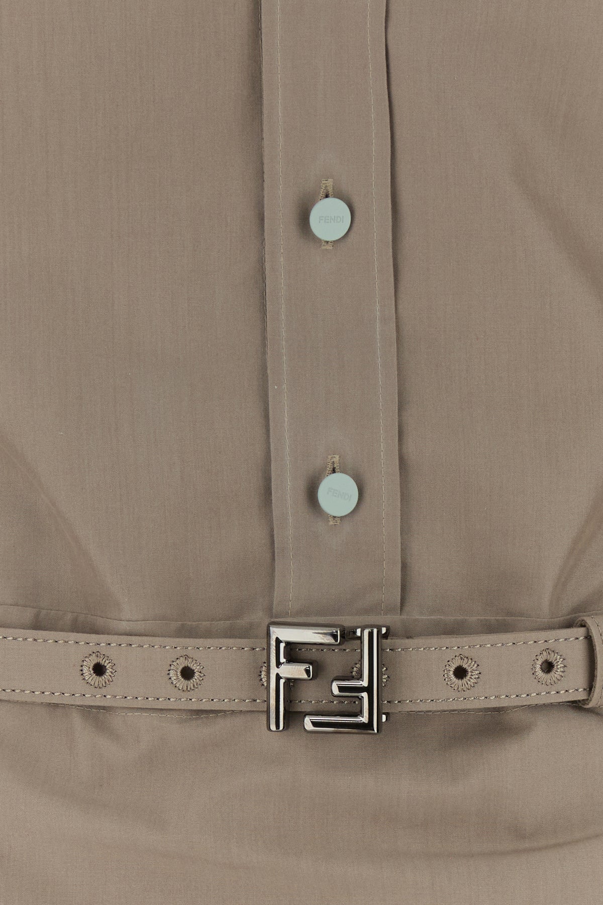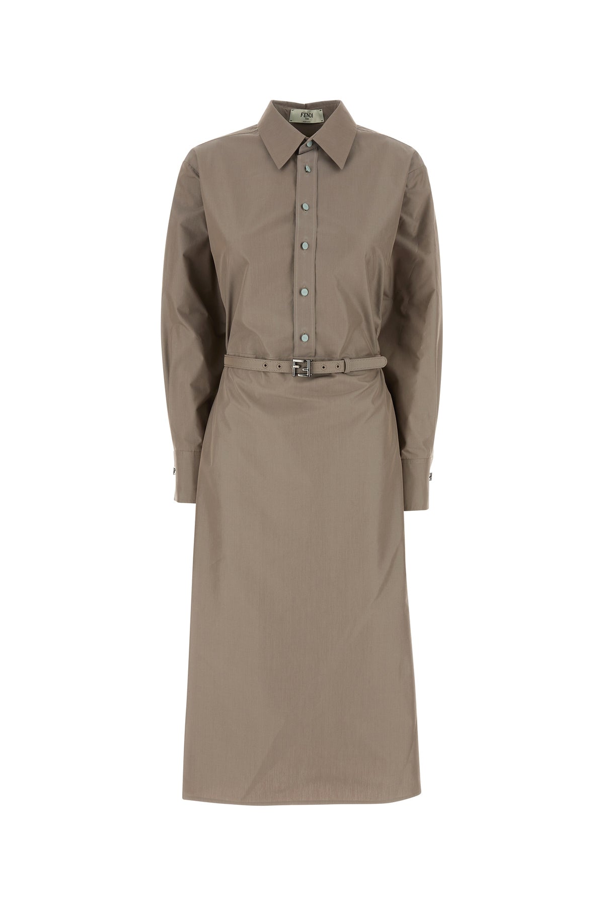 Abito chemisier realizzato in popeline di cotone e seta arricchito da cintura in tessuto tonale.
