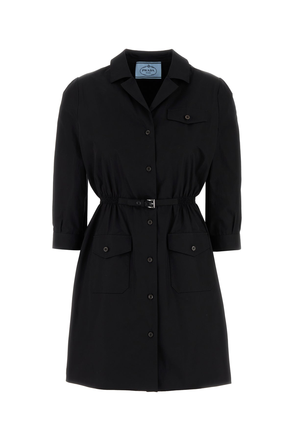 Abito chemisier realizzato in popeline di puro cotone arricchito da iconico triangolo metallico logato sul retro.