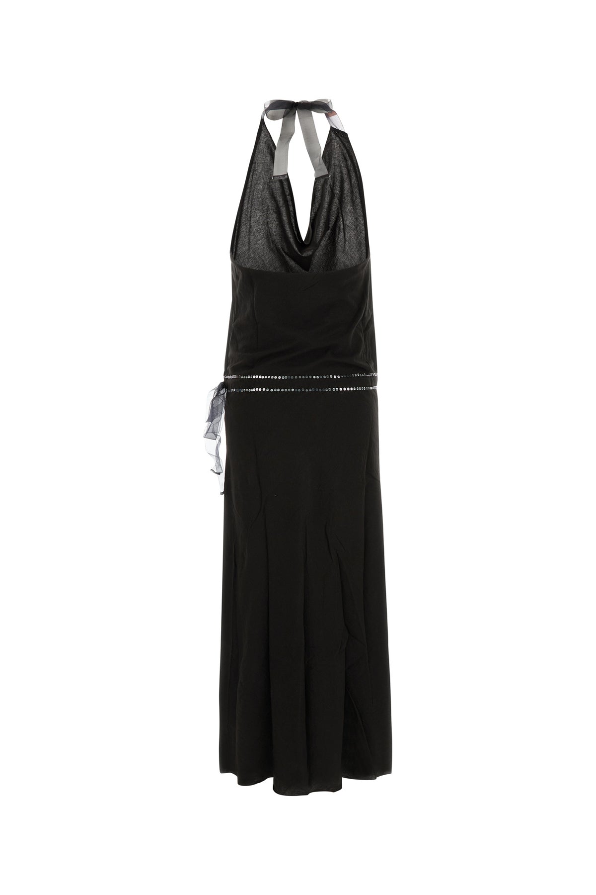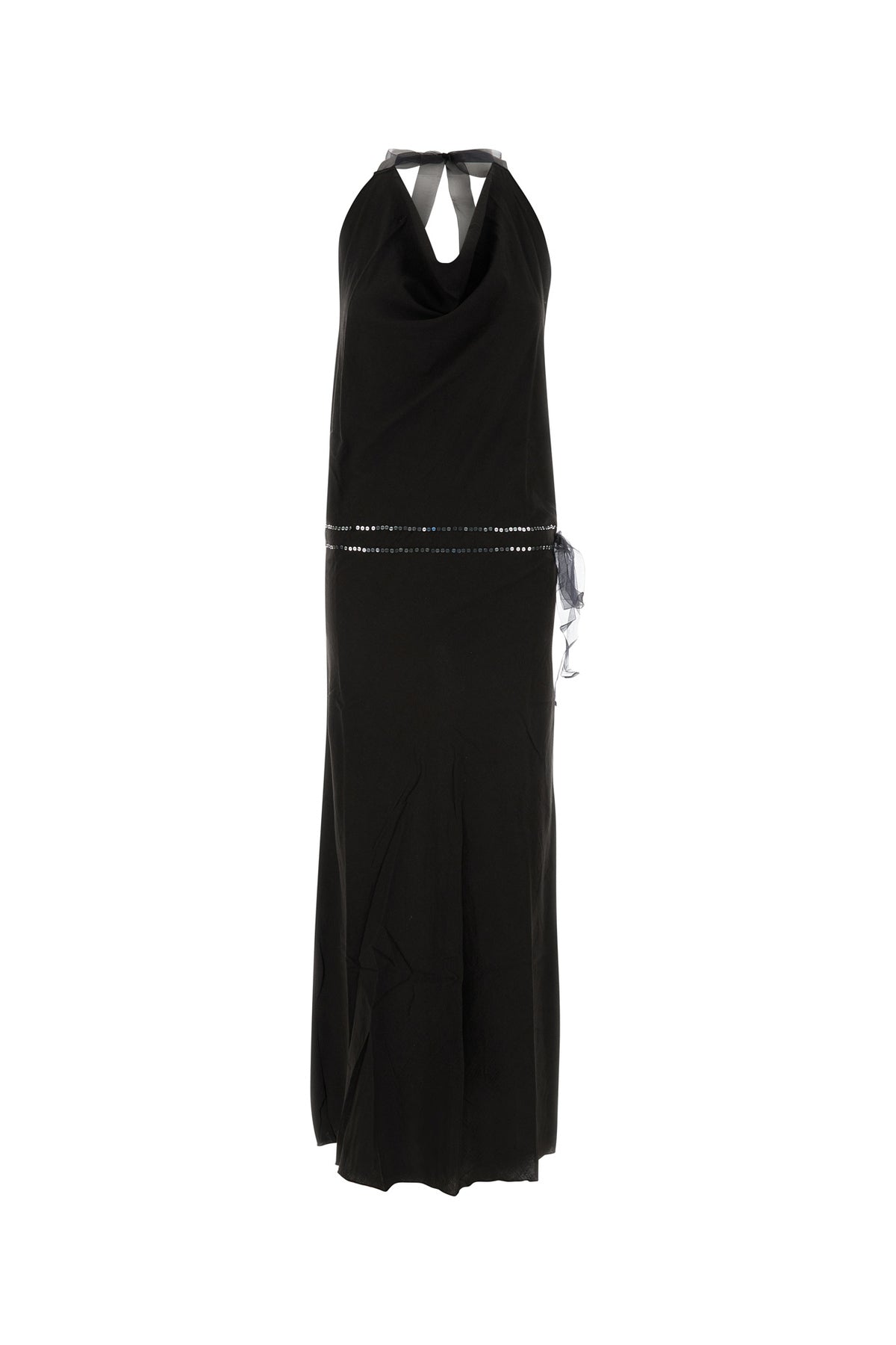 Abito dal taglio lungo realizzato in puro cotone arricchito da paillettes in vita.