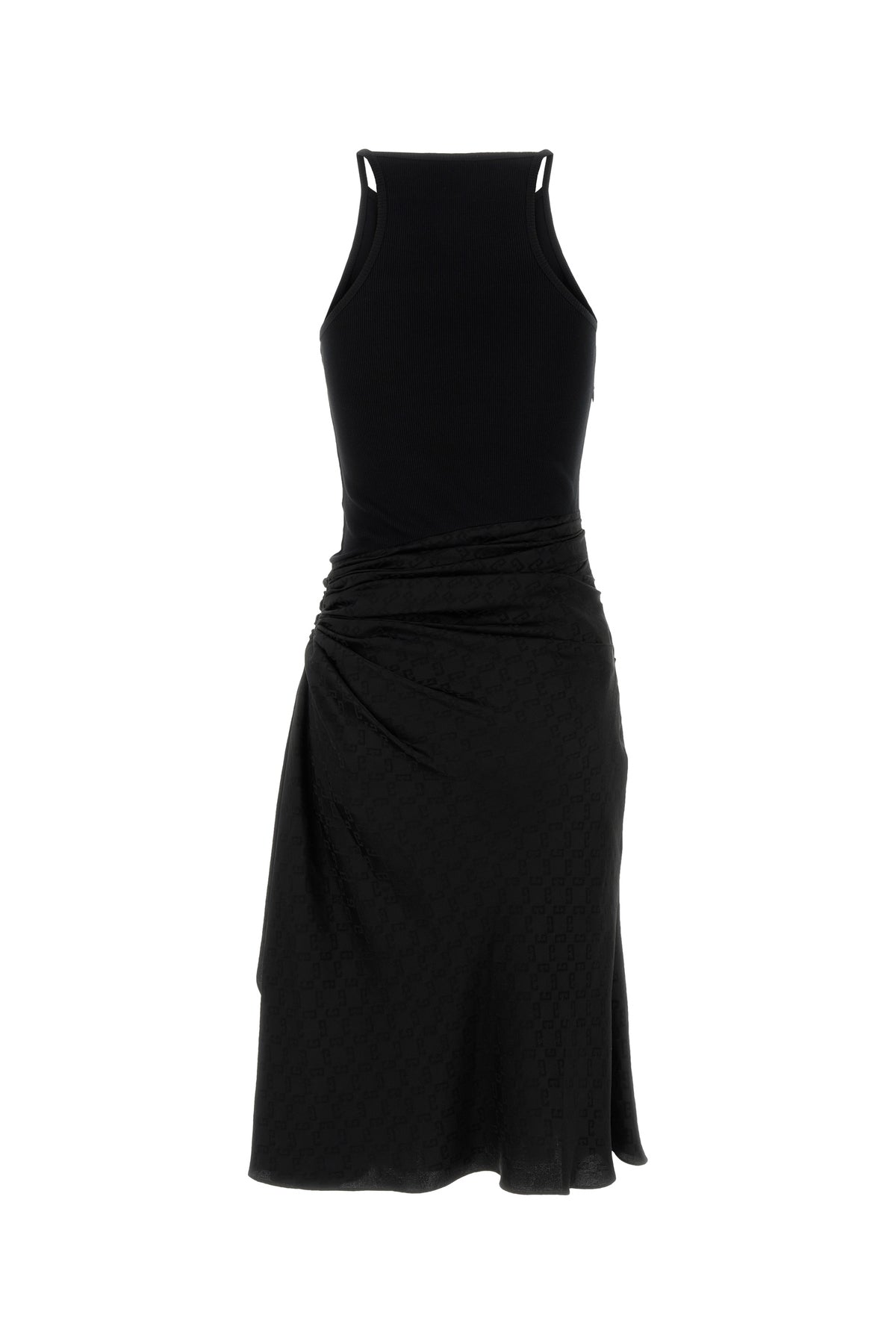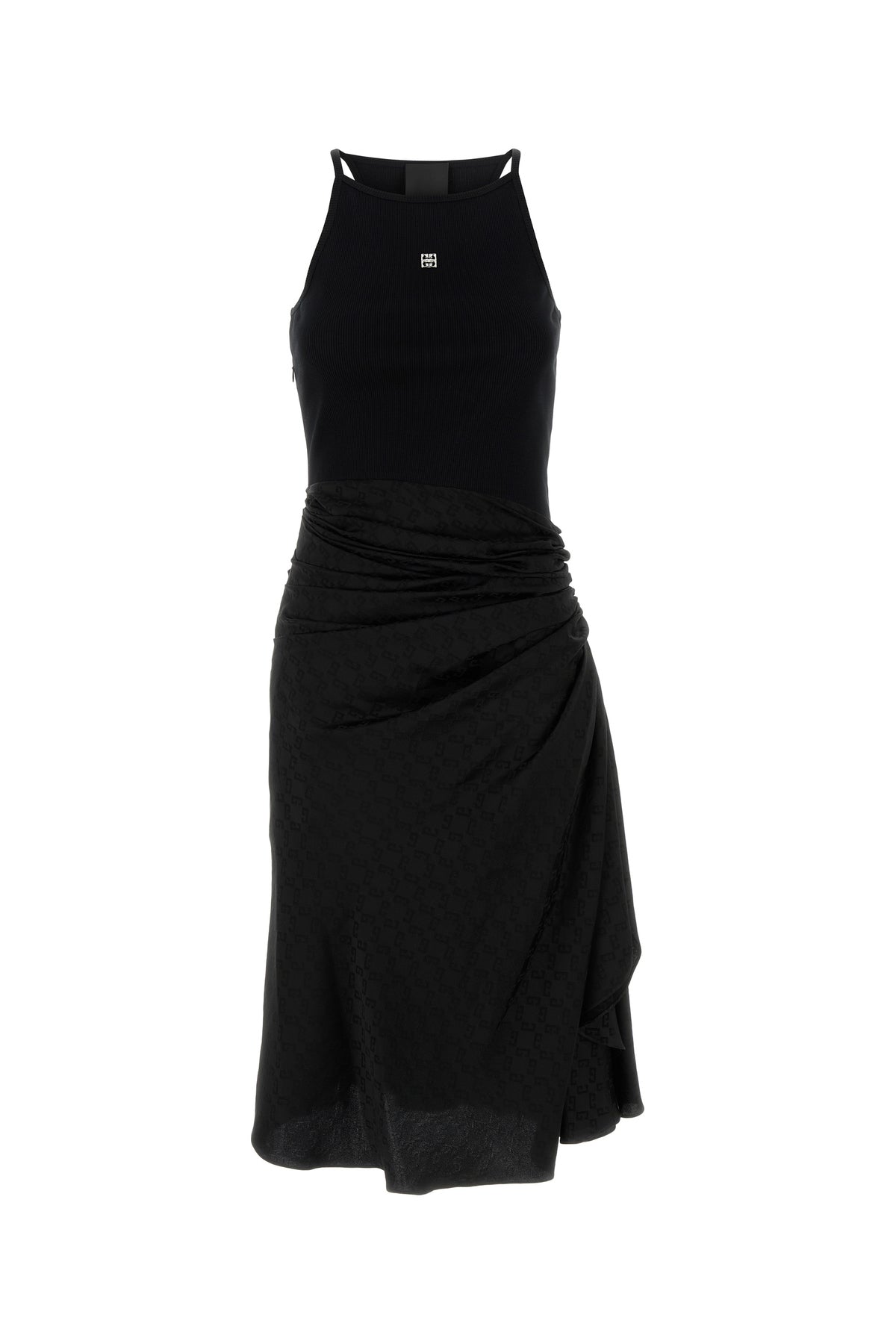 Abito realizzato in cotone stretch con inserto in seta caratterizzata da ricamo logato sul fondo arricchito da dettaglio metallico 4G sul petto.