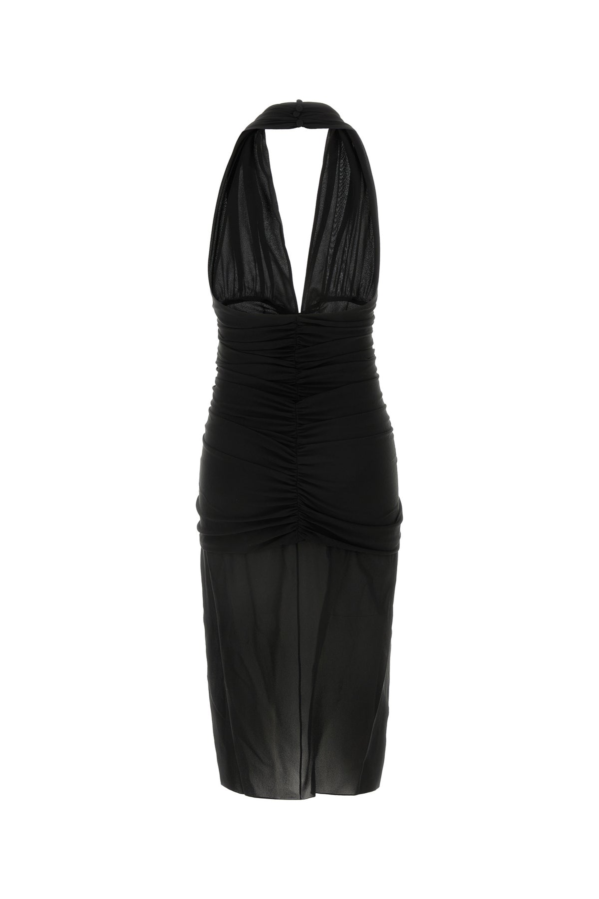 Abito aderente realizzato in crepe di pura seta caratterizzato da arricciature.