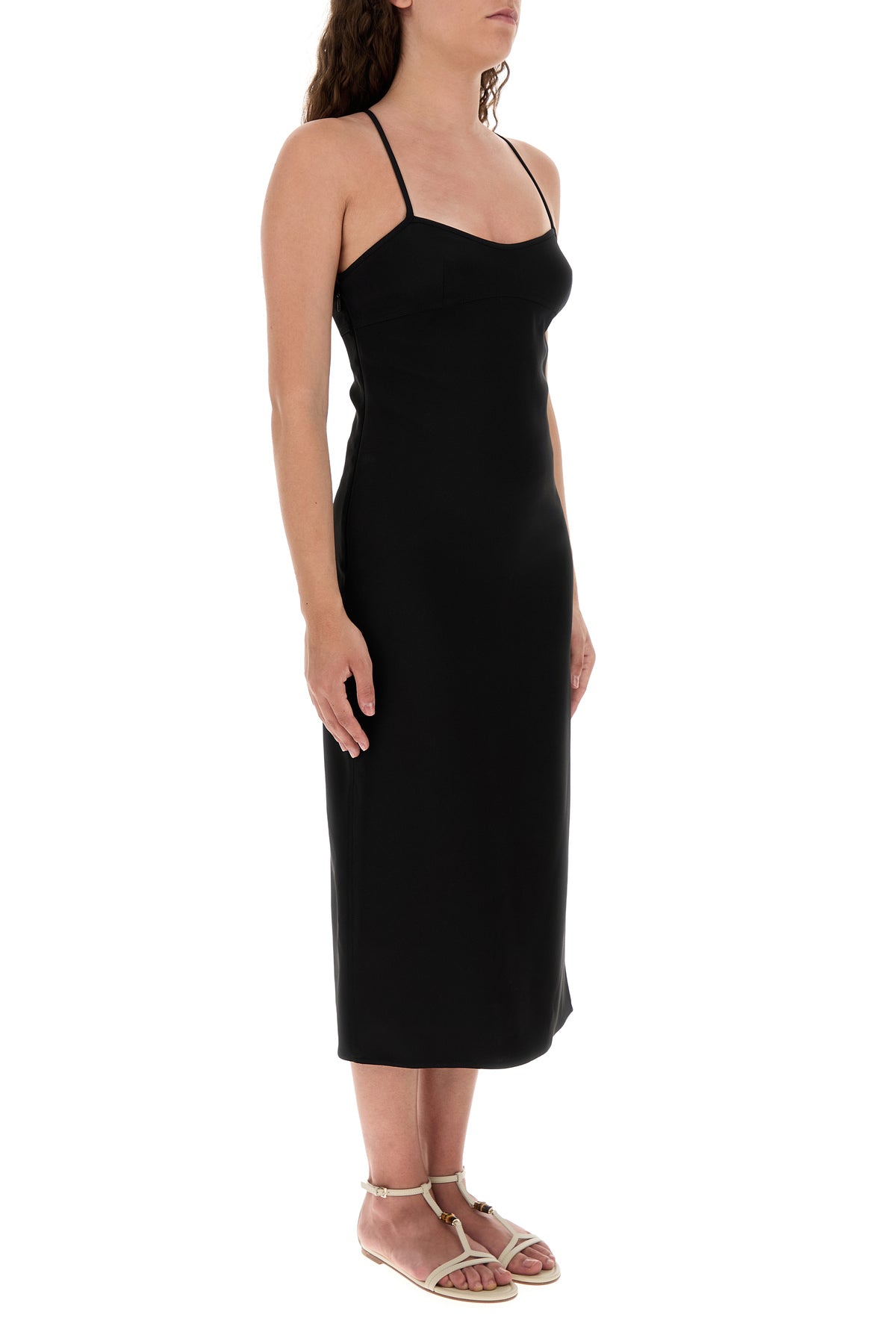 Abito midi realizzato in crepe di viscosa e seta arricchito da dettaglio Morsetto con cristalli sul retro.