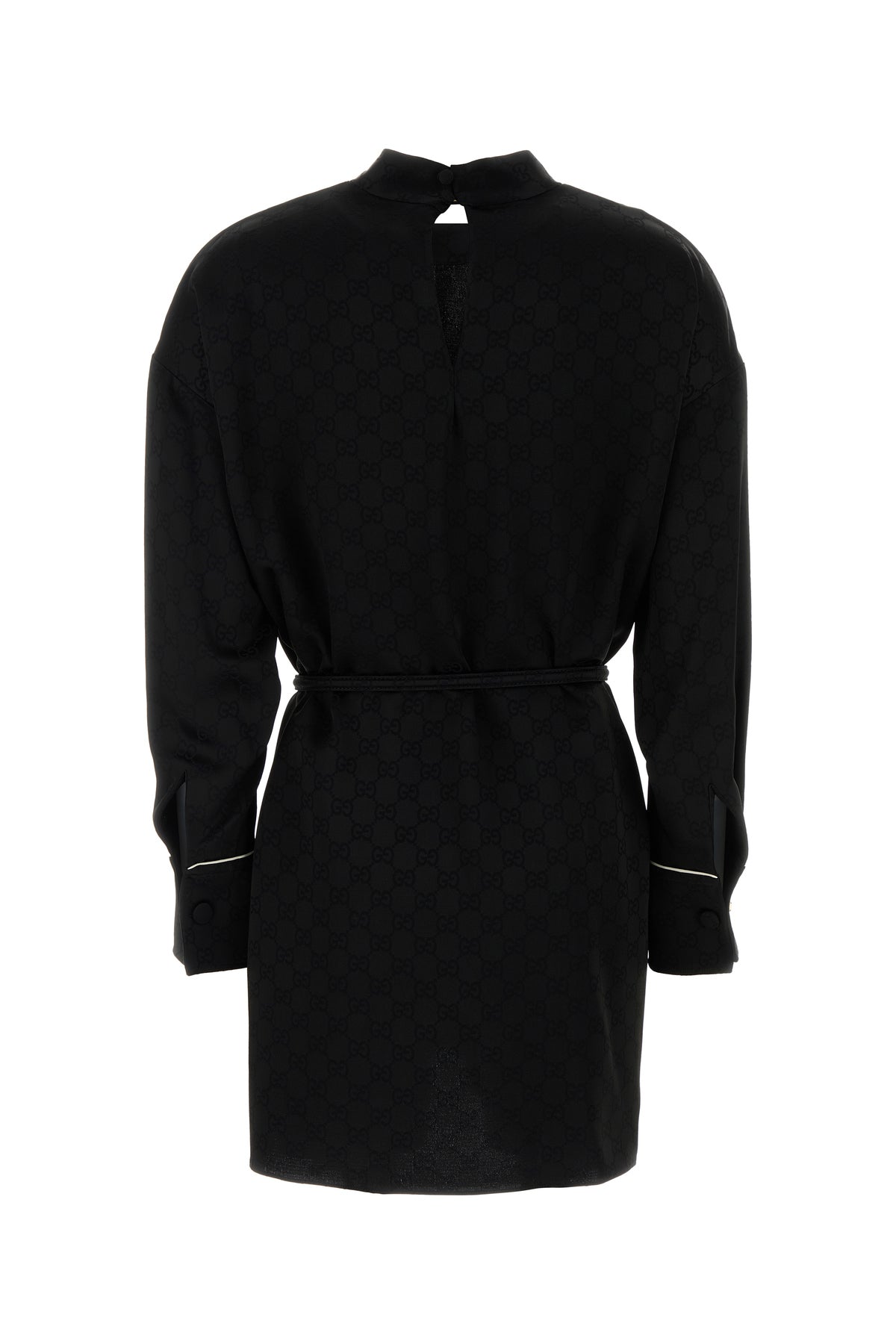 Abito realizzato in crepe caratterizzato da ricamo GG tonale su tutta la superficie.