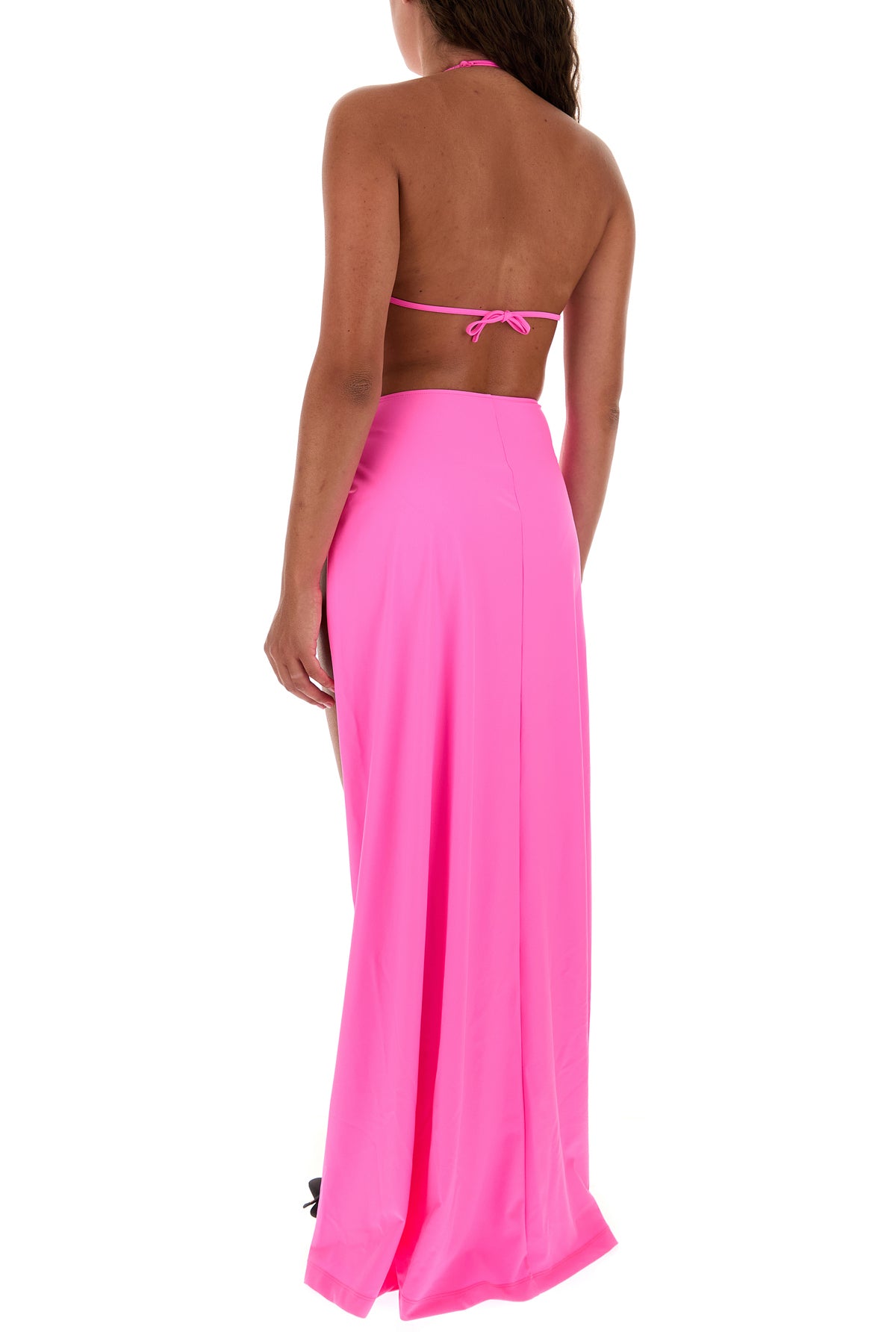 Abito realizzato in nylon stretch caratterizzato da profondo spacco laterale.