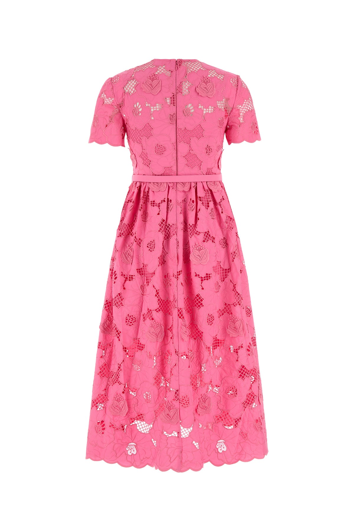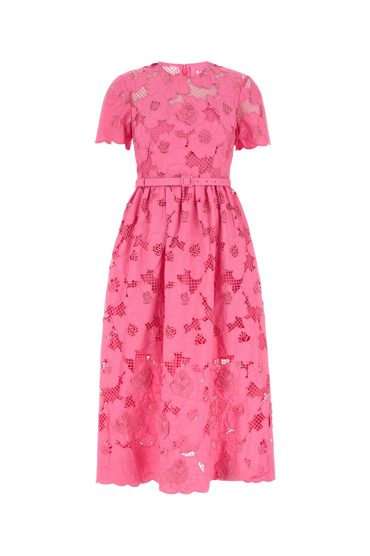 Abito midi realizzato in pizzo caratterizzato da girocollo.
