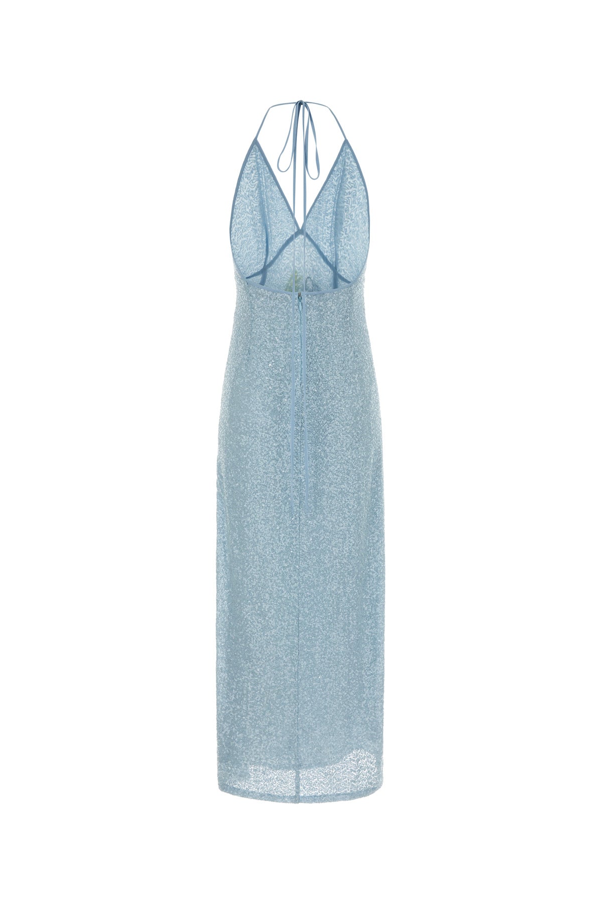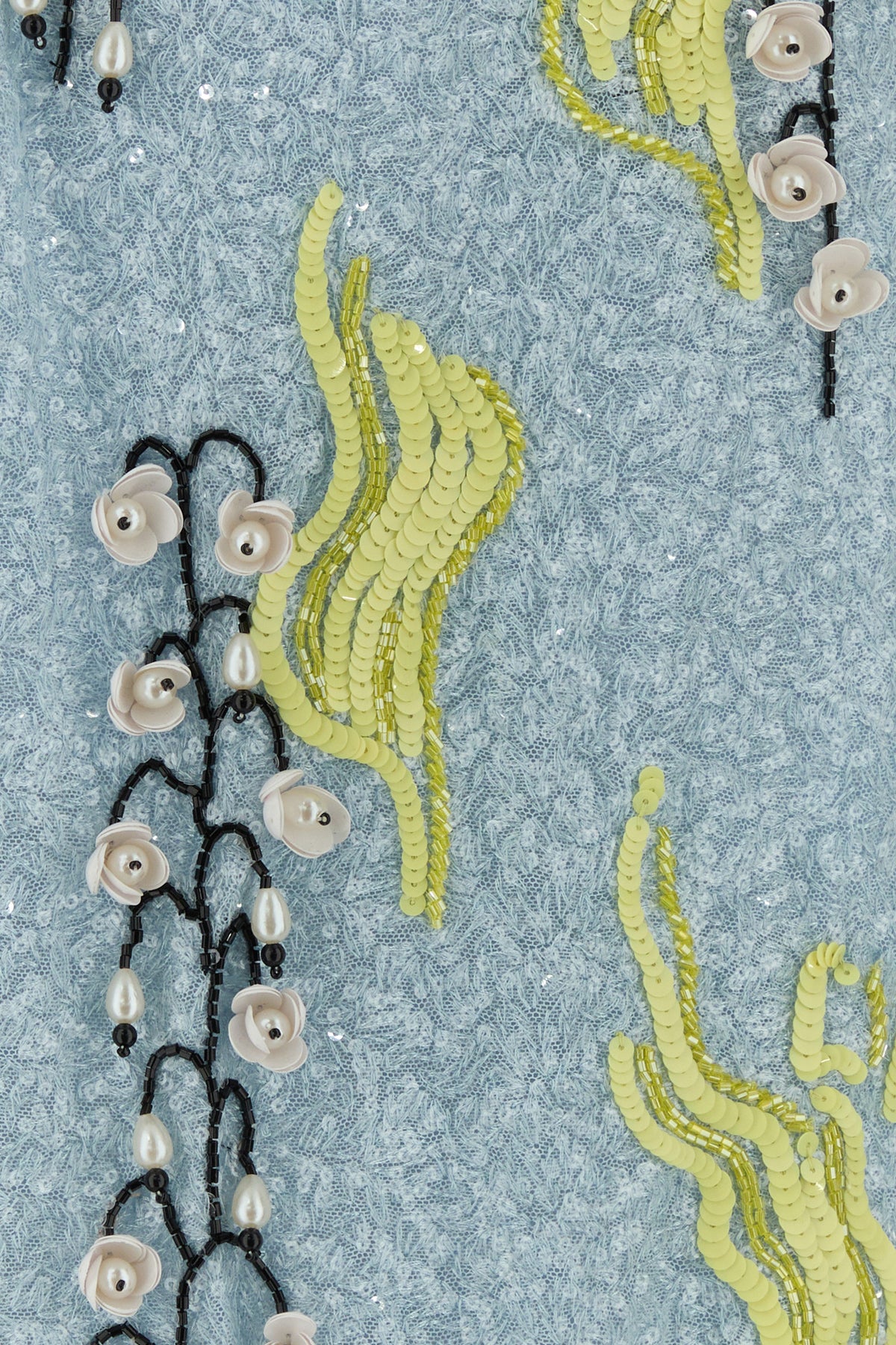 Abito realizzato in poliestere stretch interamente ricoperto da paillettes arricchito da applicazioni floreali su tutta la superficie.