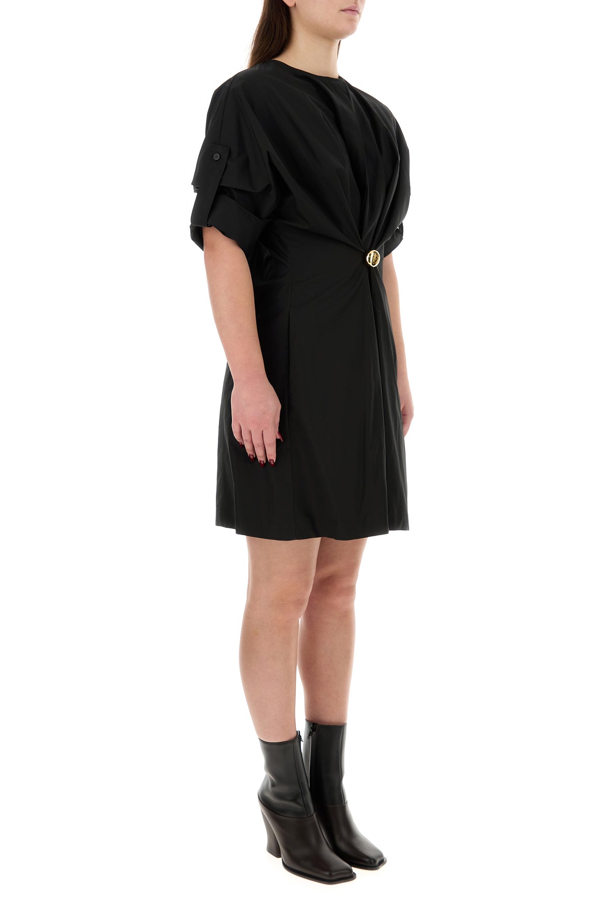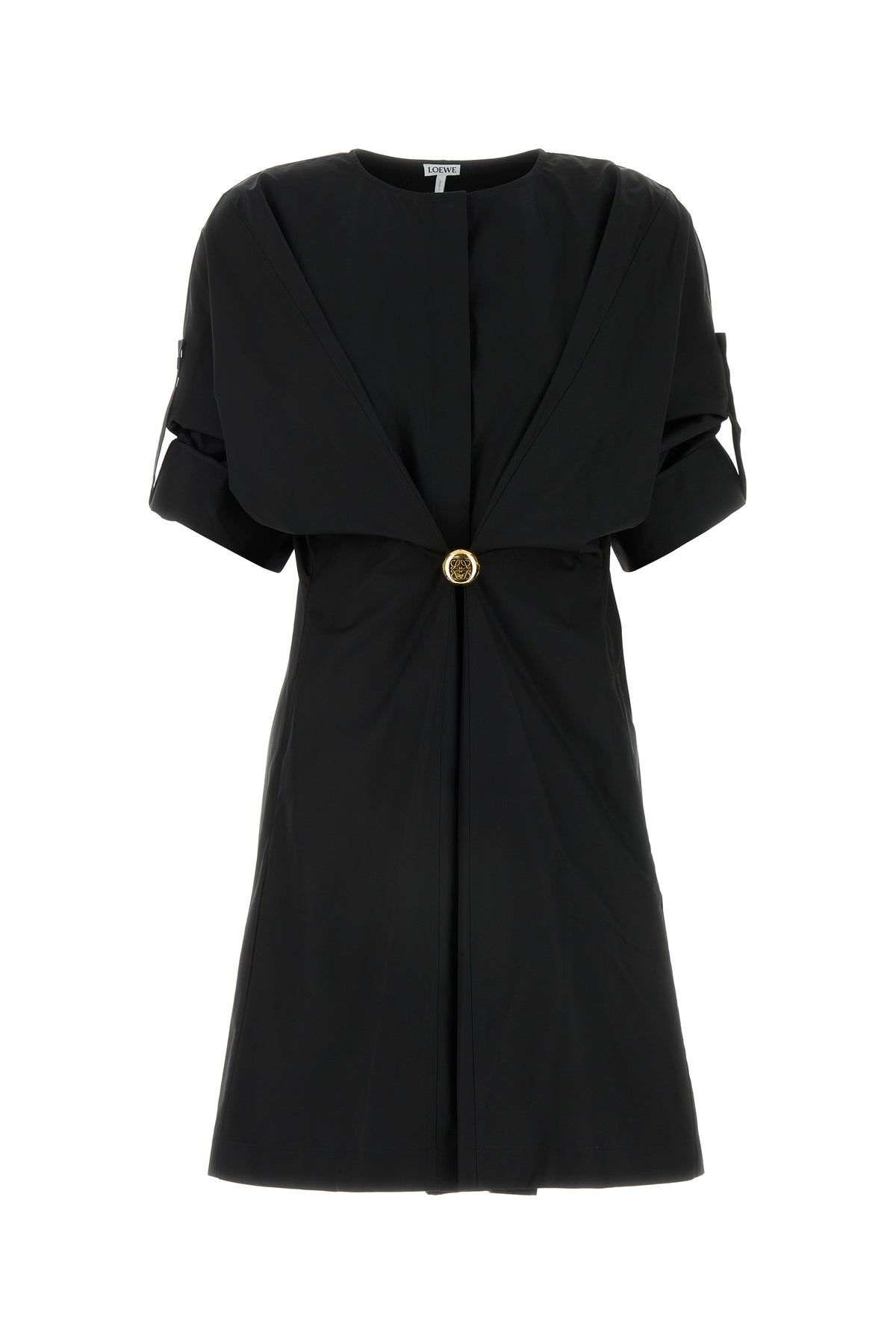 Abito realizzato in popeline di puro cotone arricchito da spilla amovibile logata sulla parte frontale.