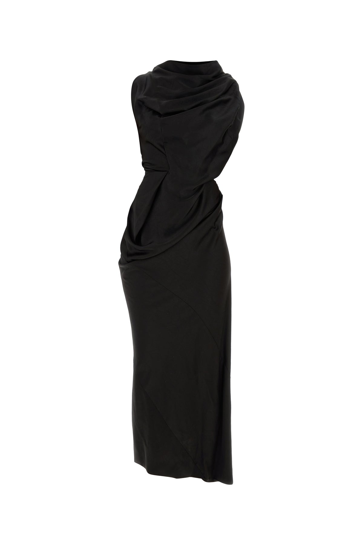 Abito drappeggiato realizzato in raso.