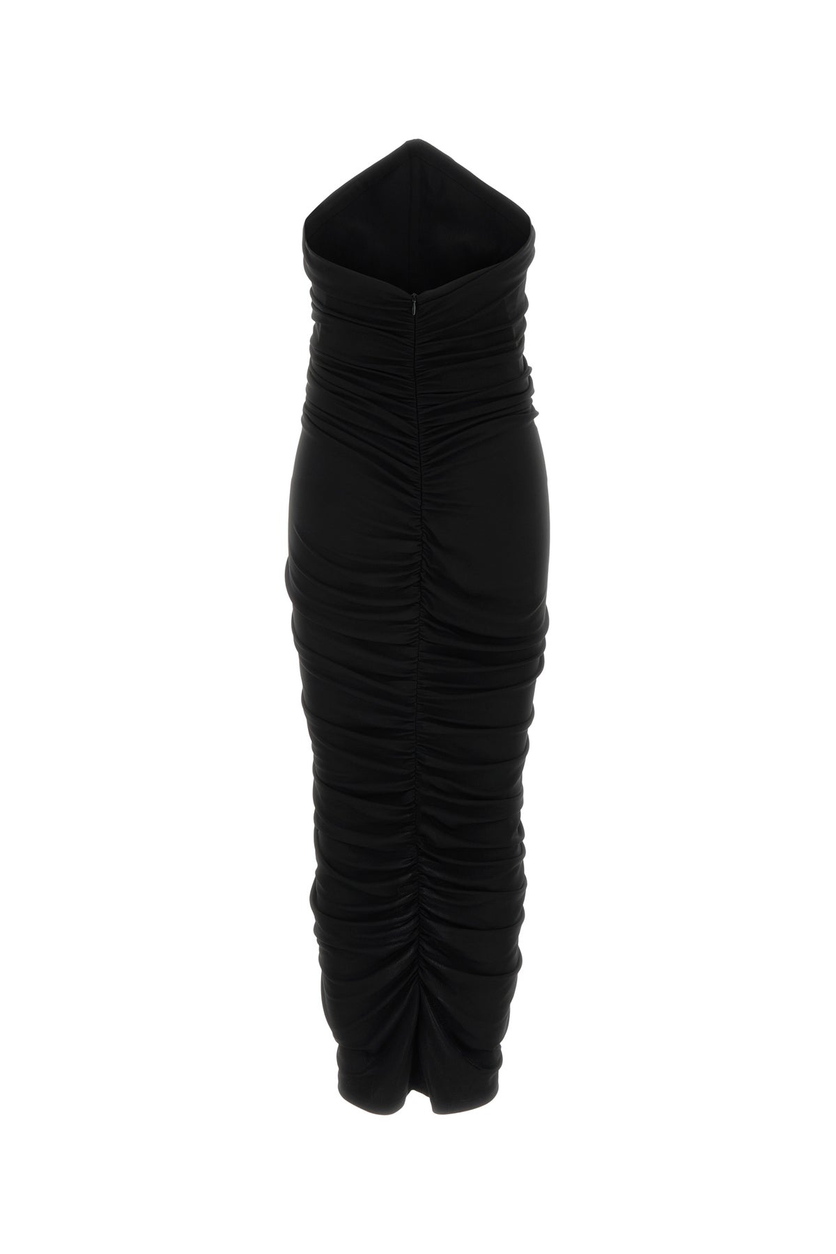 Abito aderente realizzato in viscosa stretch caratterizzato da arricciatura sulla parte frontale e sul retro.