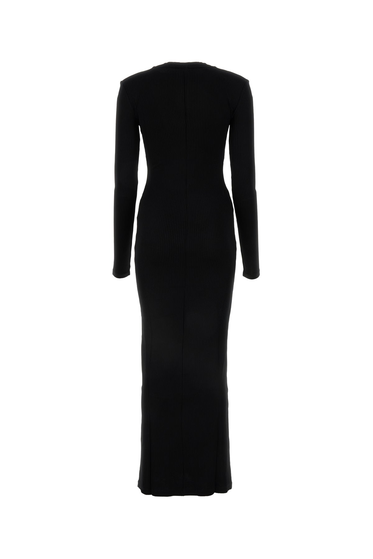 Abito realizzato in viscosa stretch a costine arricchito da particolare dettaglio metallico sulla parte frontale.