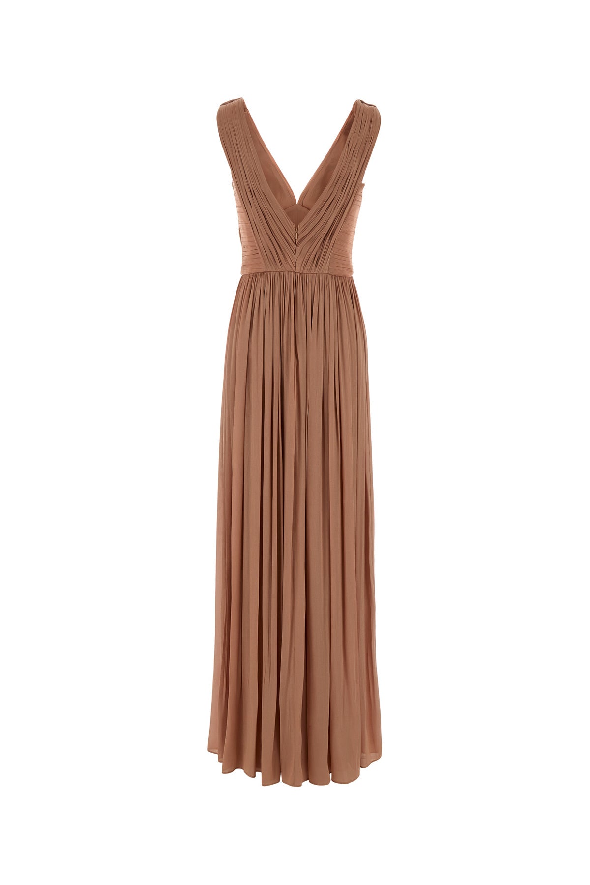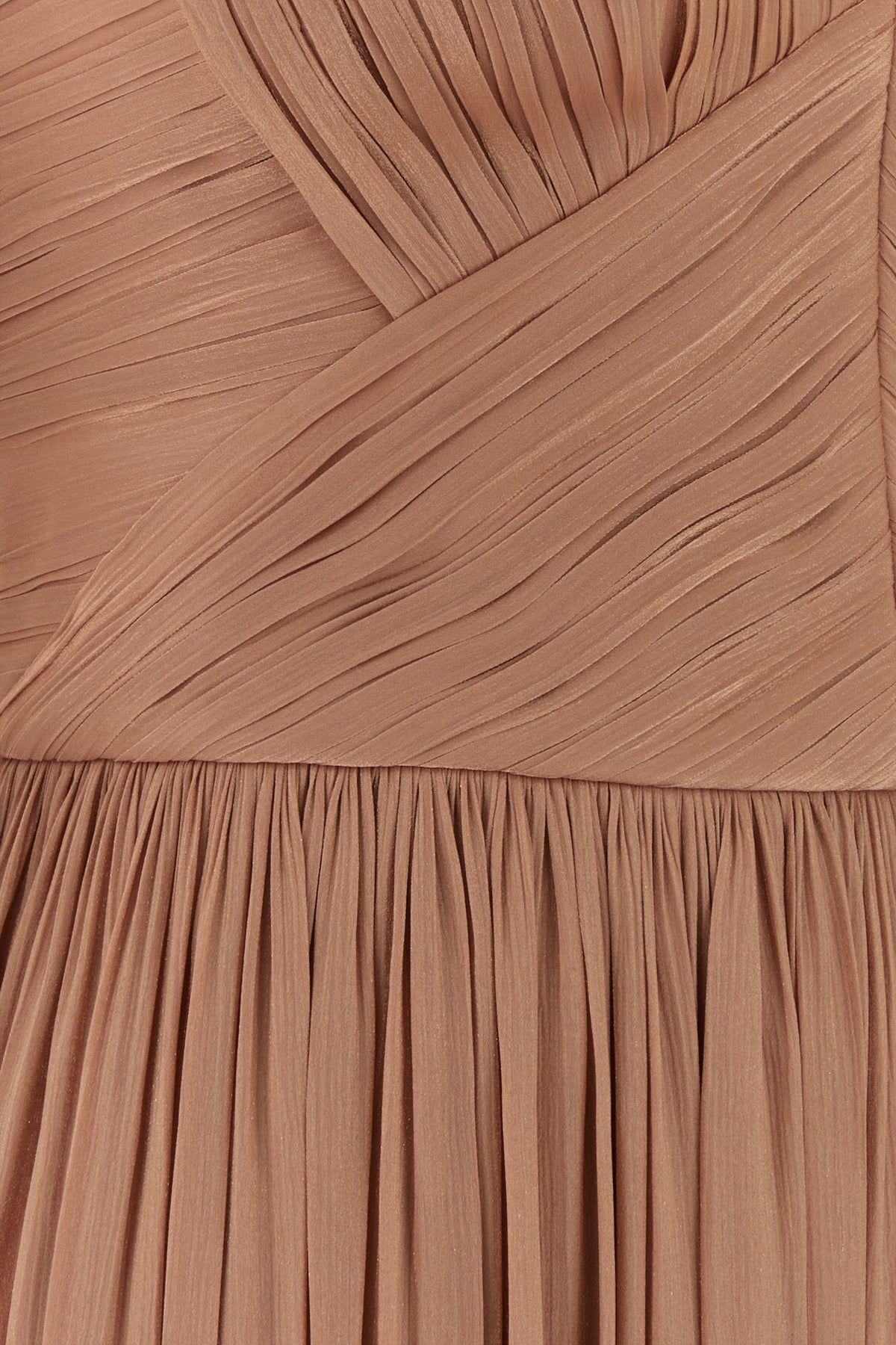 Abito lungo plissettato realizzato in georgette con fili in lurex.