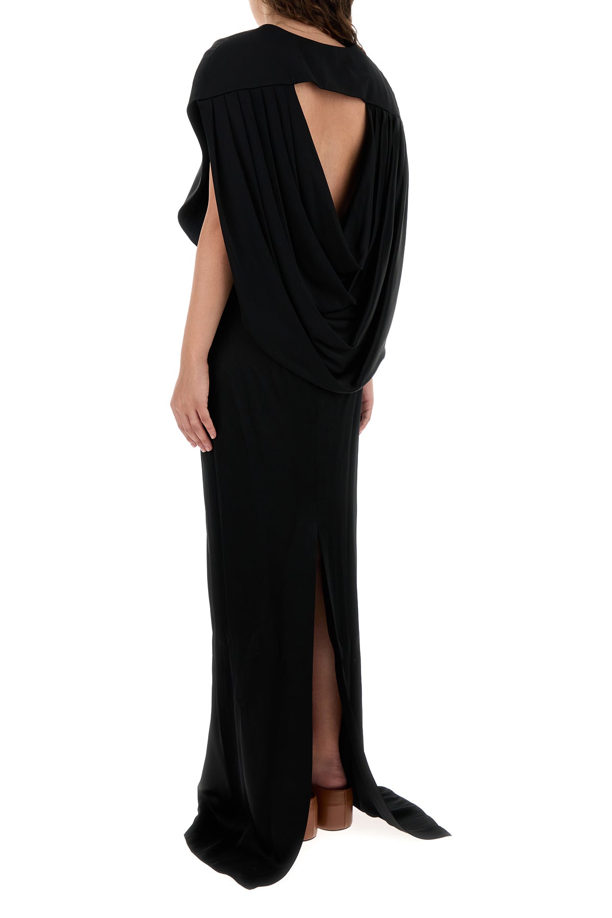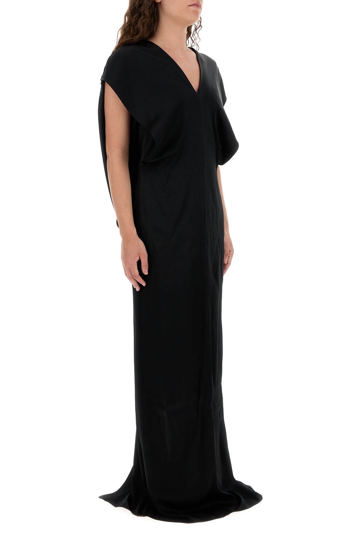 Abito lungo realizzato in raso caratterizzato da scollatura con drappeggio sul retro.