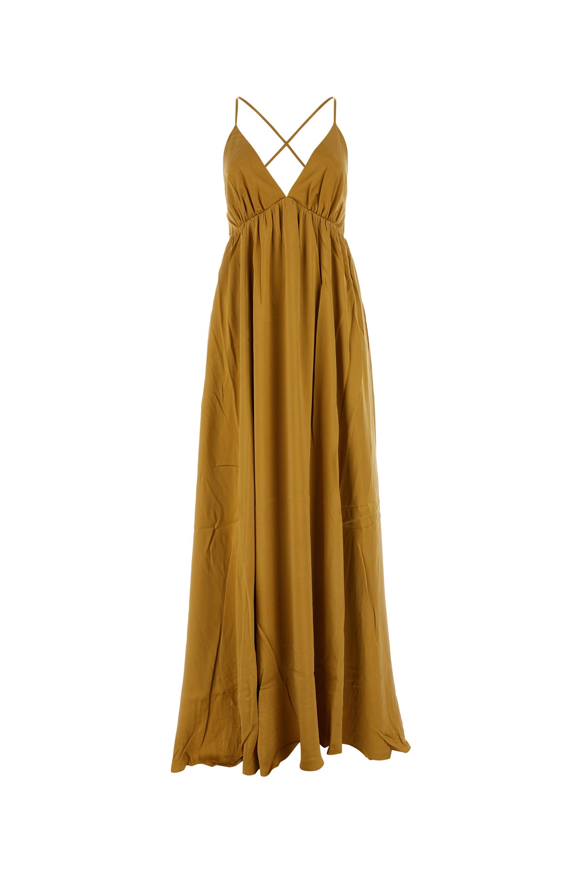 Abito lungo in seta ocra