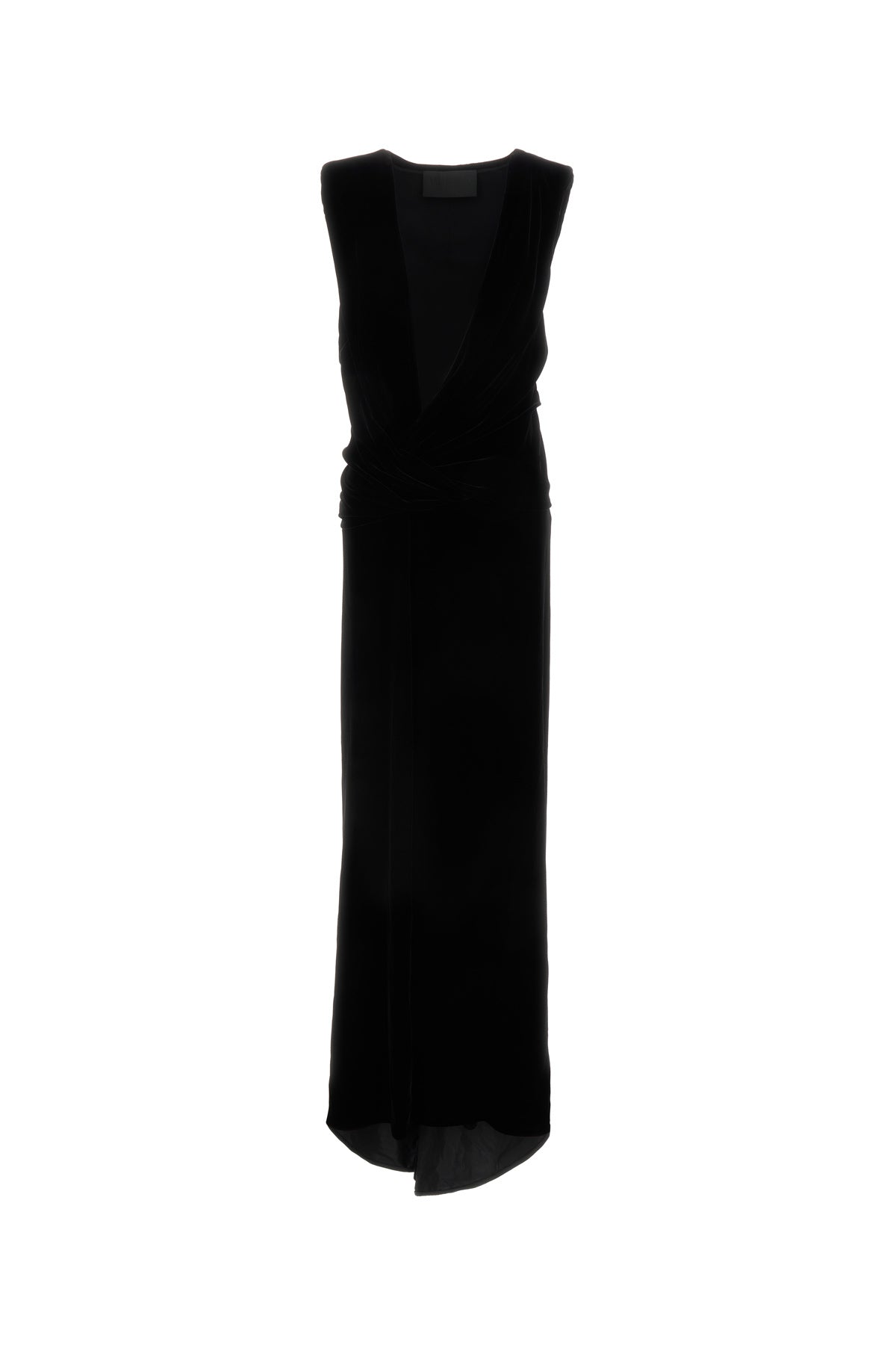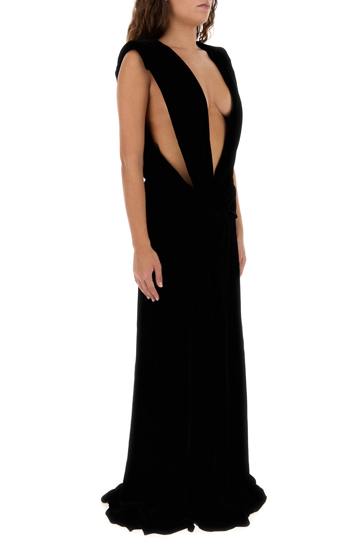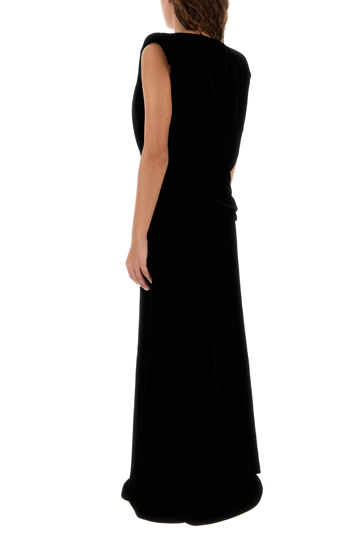 Abito lungo realizzato in velluto caratterizzato da arricciatura sulla parte frontale e sul retro.