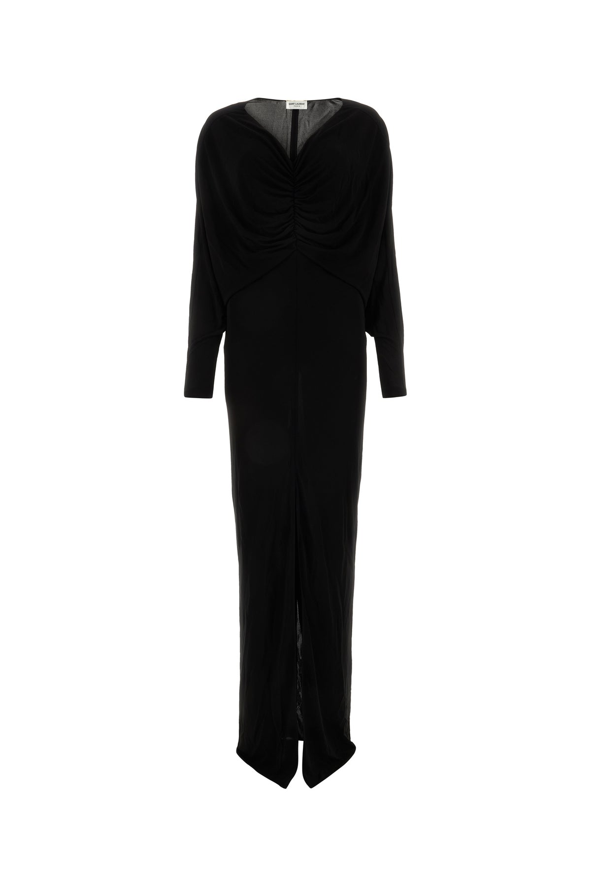 Abito lungo semitrasparente realizzato in viscosa caratterizzato da arricciature sulla parte frontale.