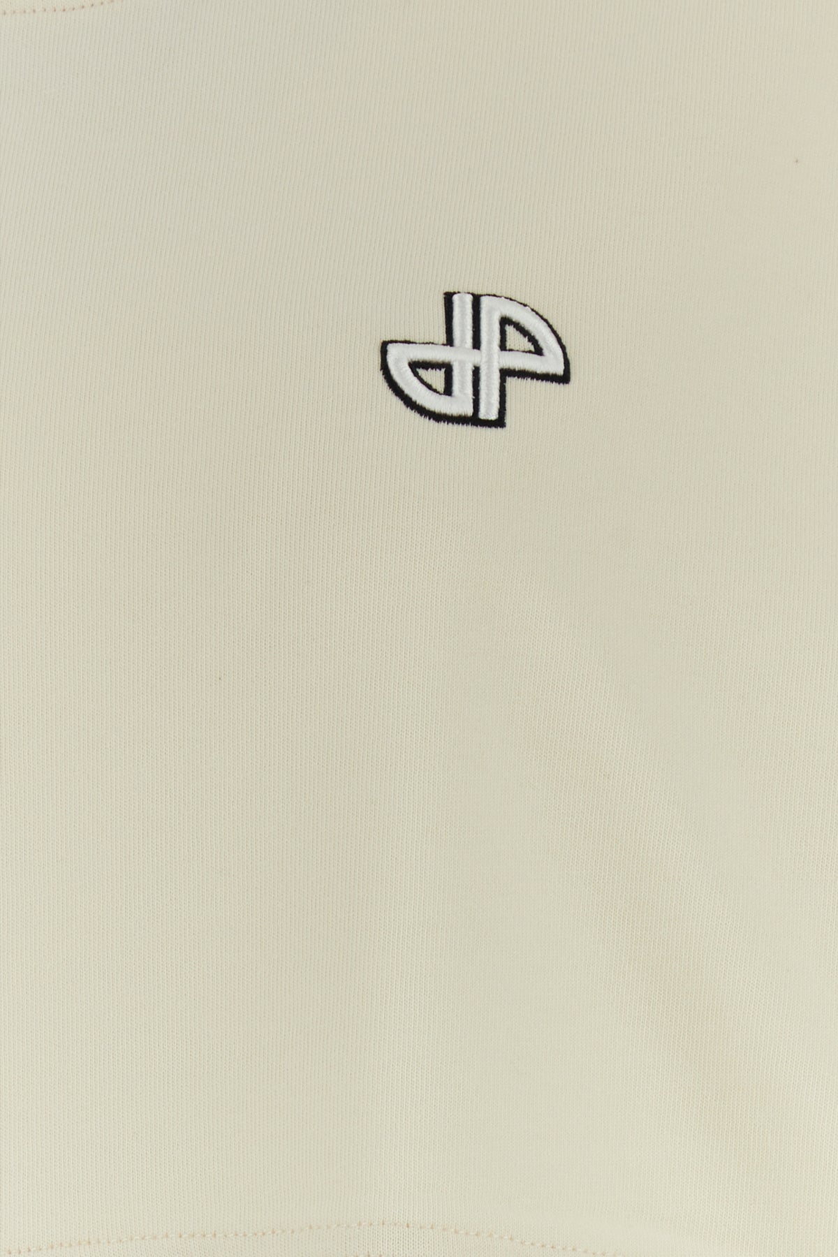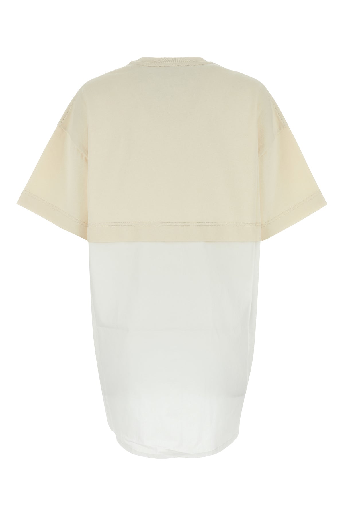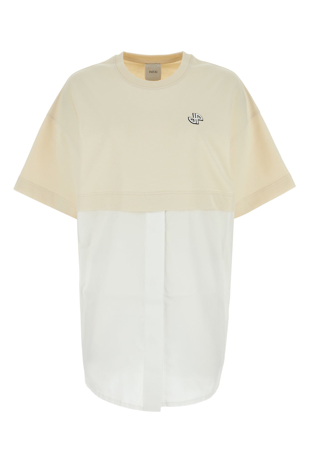 Abito t-shirt realizzato in cotone con inserto in popeline sul fondo arricchito da applicazione logata sul petto.