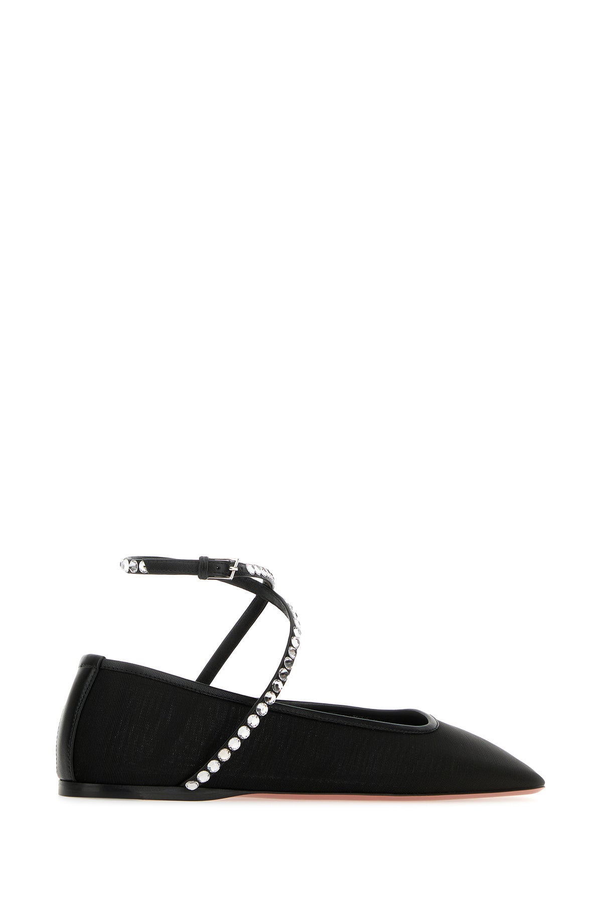 Ballerine realizzate in rete arricchite da cristalli sulla chiusura mediante cinturino regolabile alla caviglia.