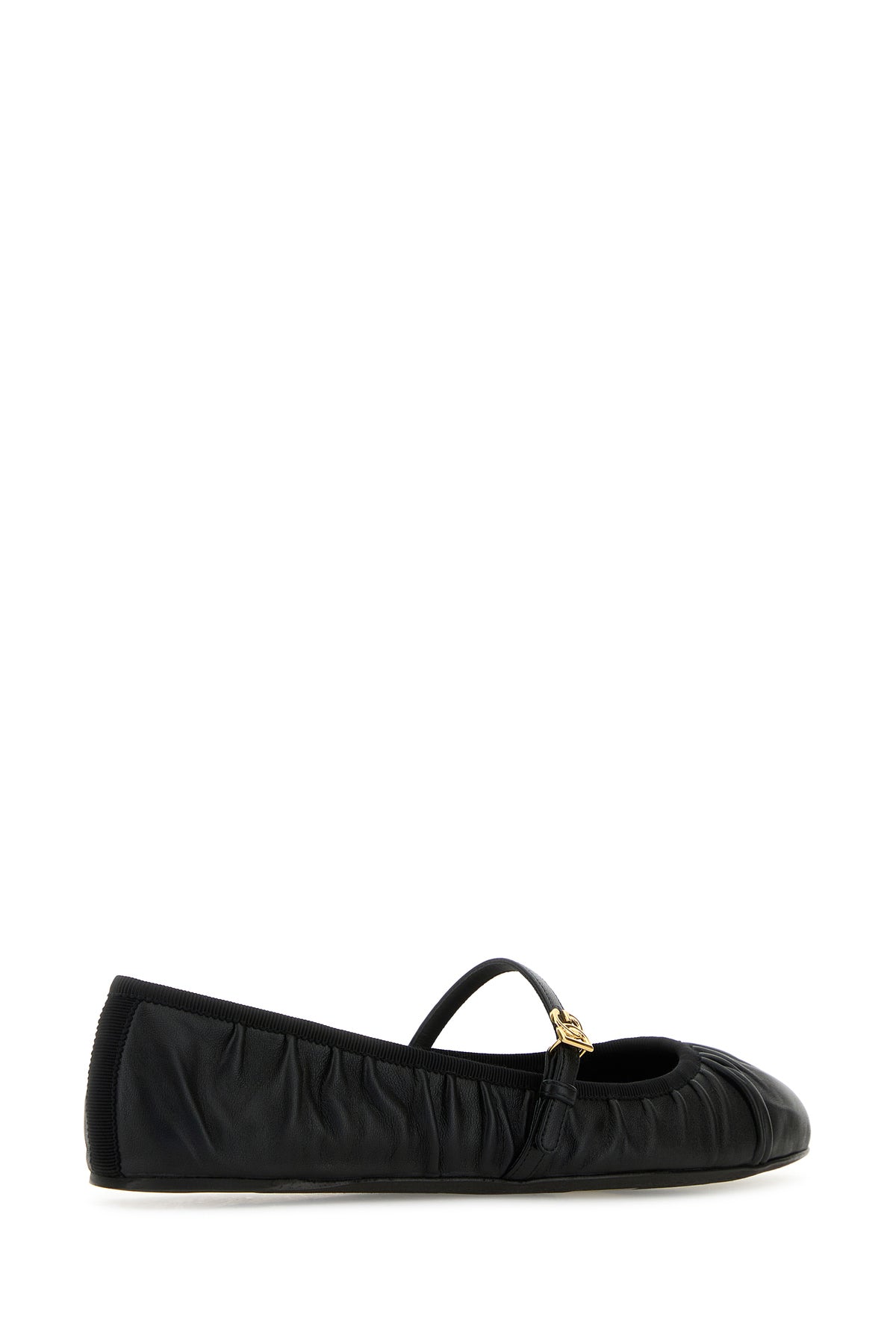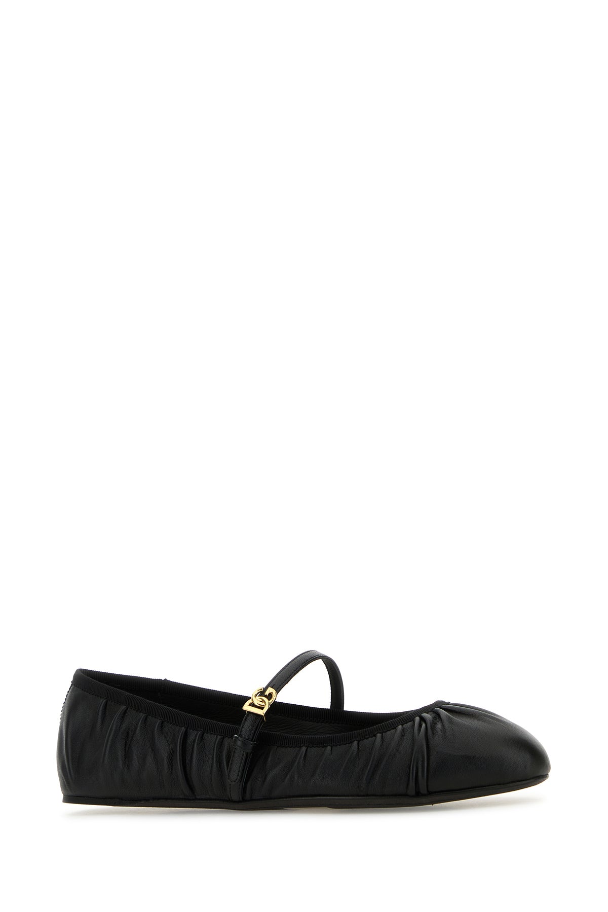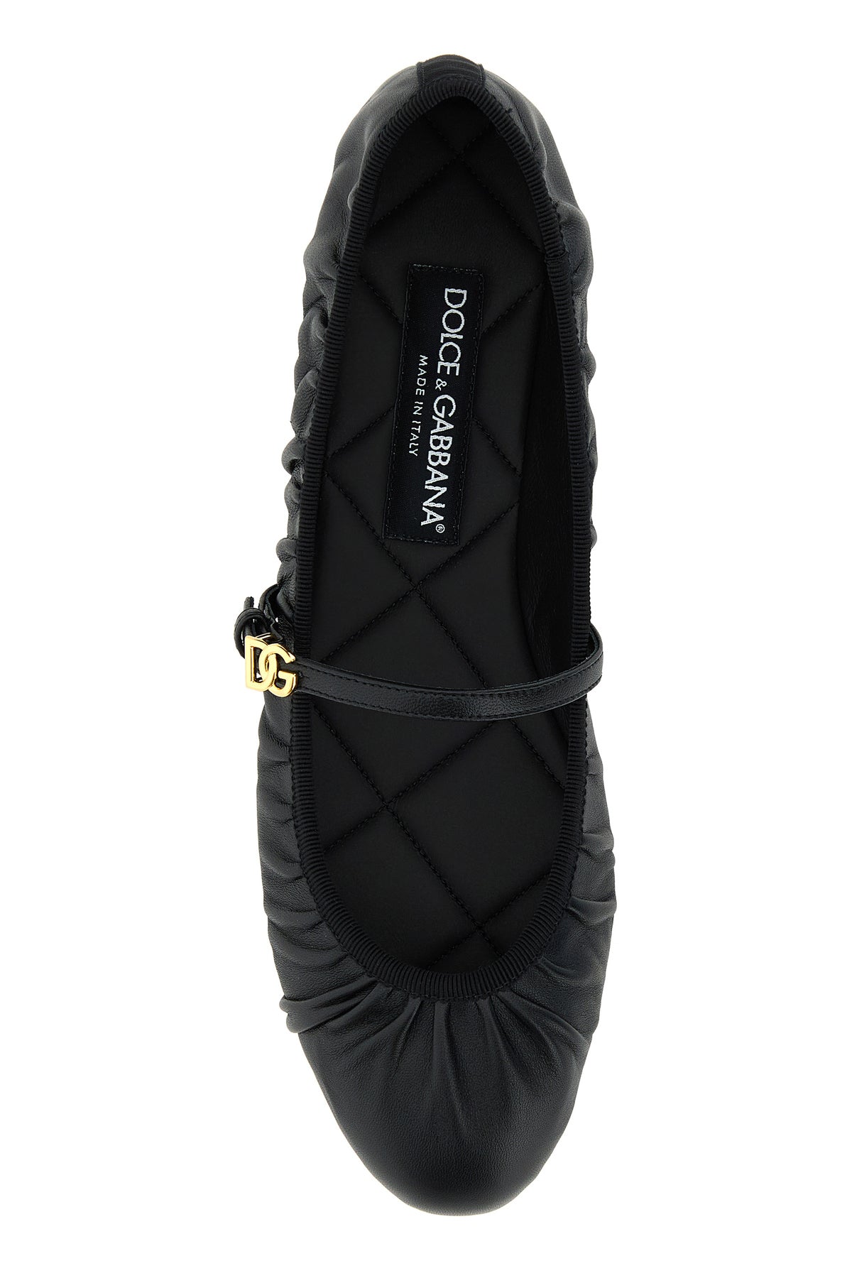 Ballerine realizzate in nappa arricchite da dettaglio metallico DG sul cinturino regolabile sul collo del piede.