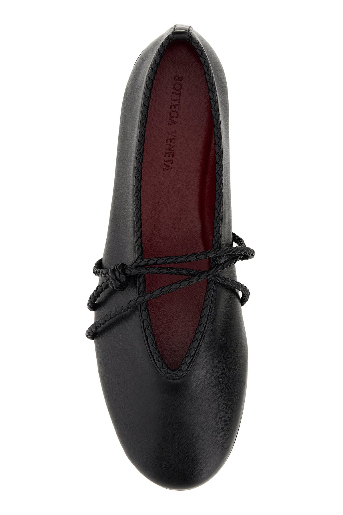 Ballerine realizzate in pelle liscia caratterizzate da cinturino con iconico motivo Intrecciato sul collo del piede.