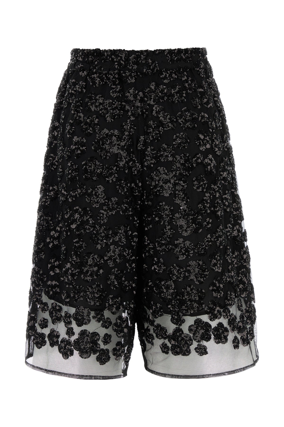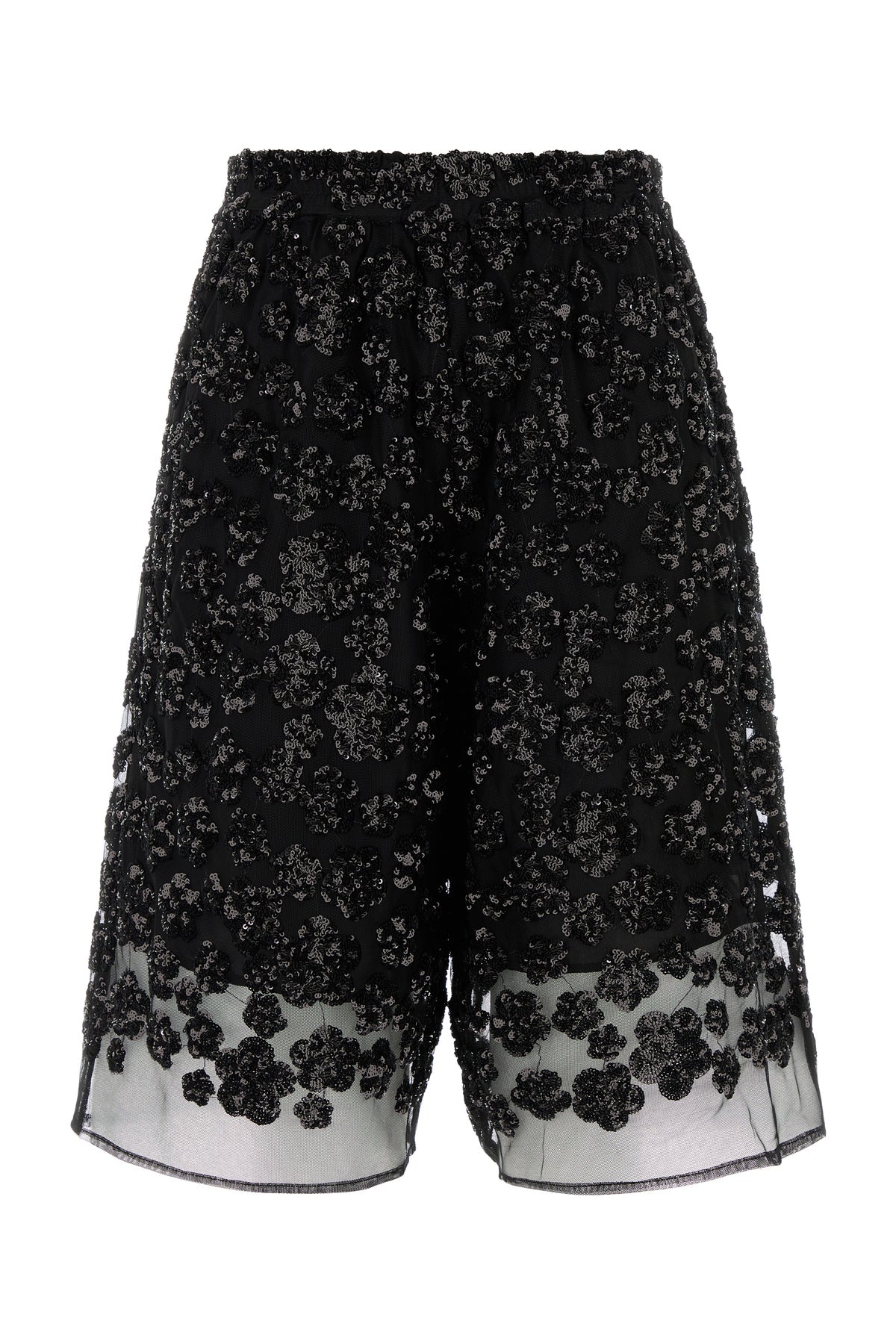 Bermuda realizzati in tulle arricchiti da decorazioni con paillettes su tutta la superficie.