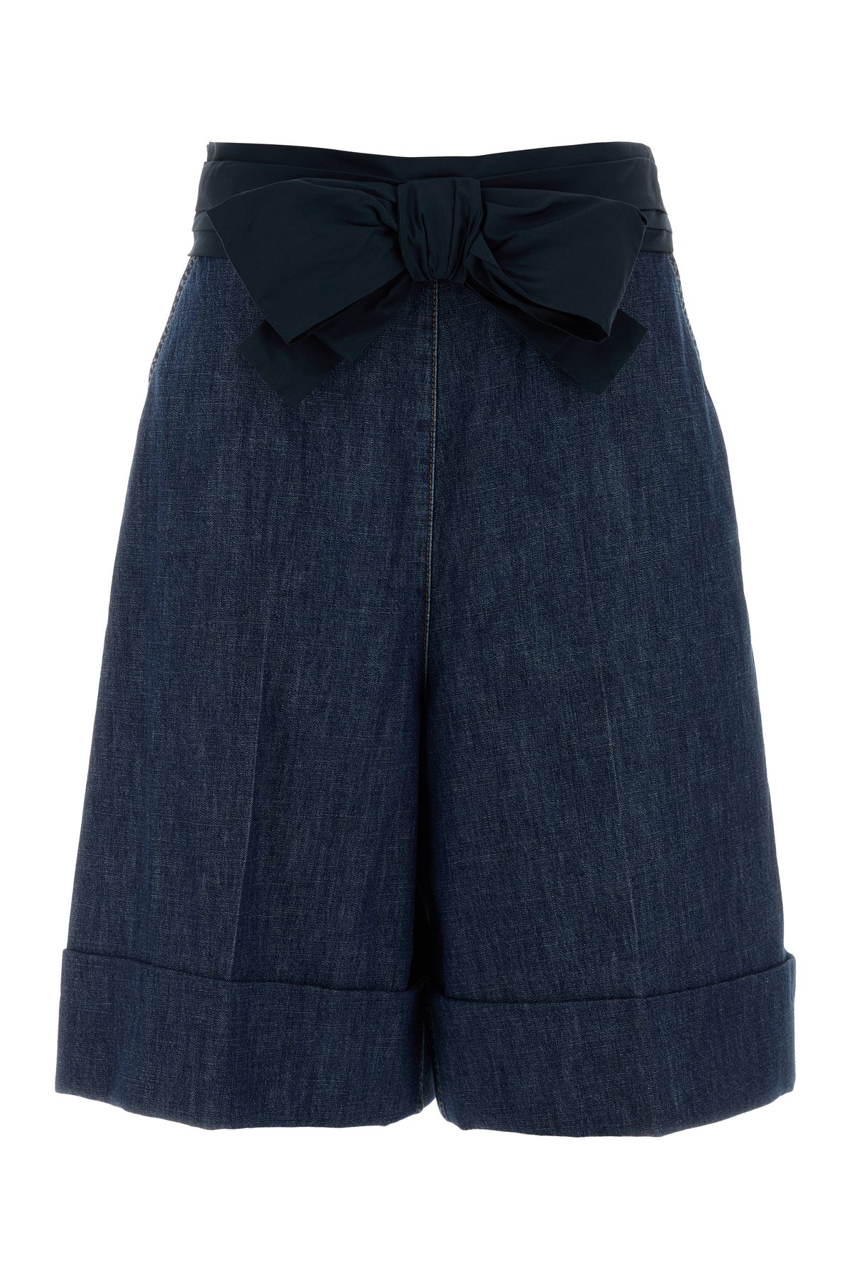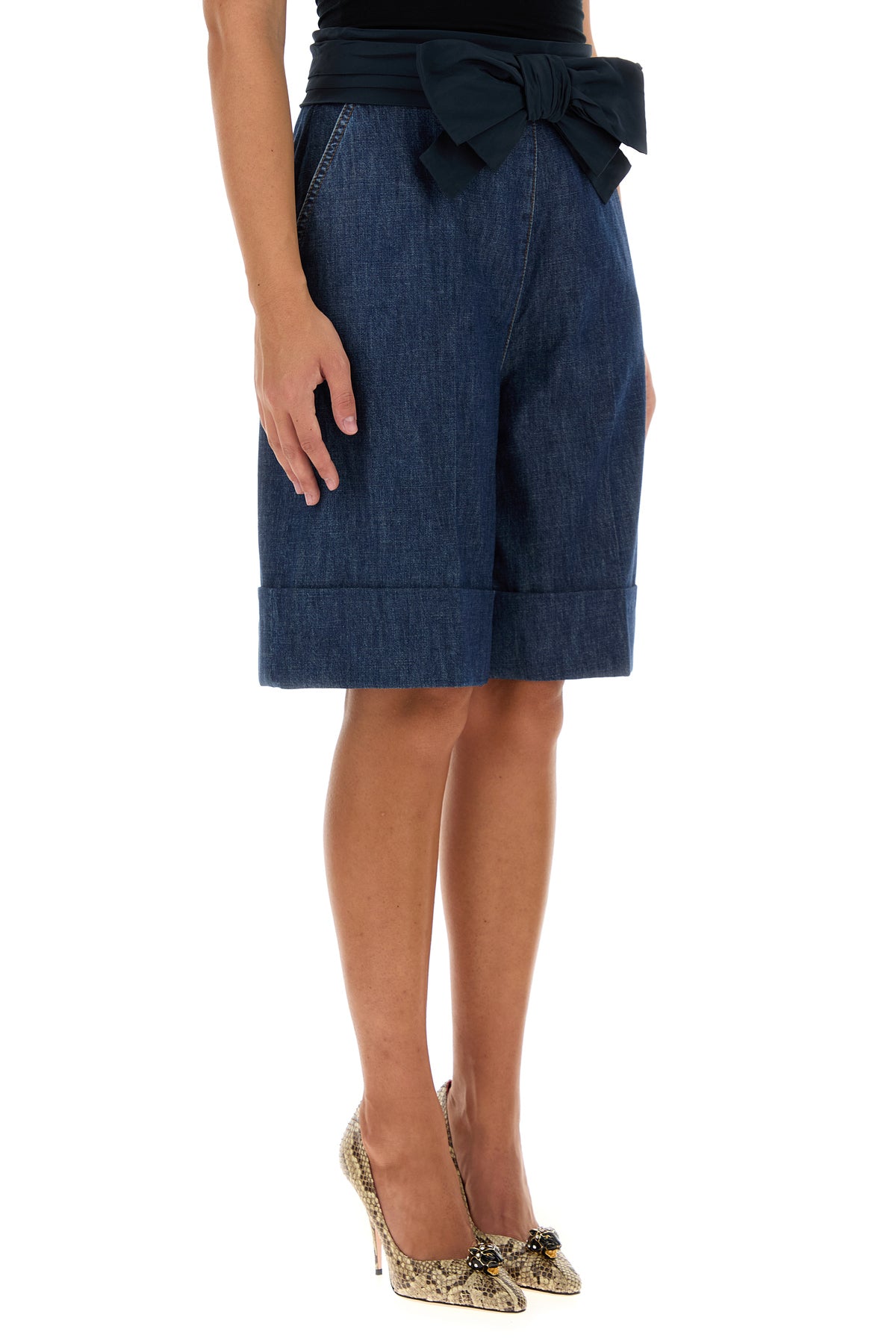 Bermuda realizzati in denim di puro cotone arricchiti da nastro con maxi fiocco decorativo in vita.