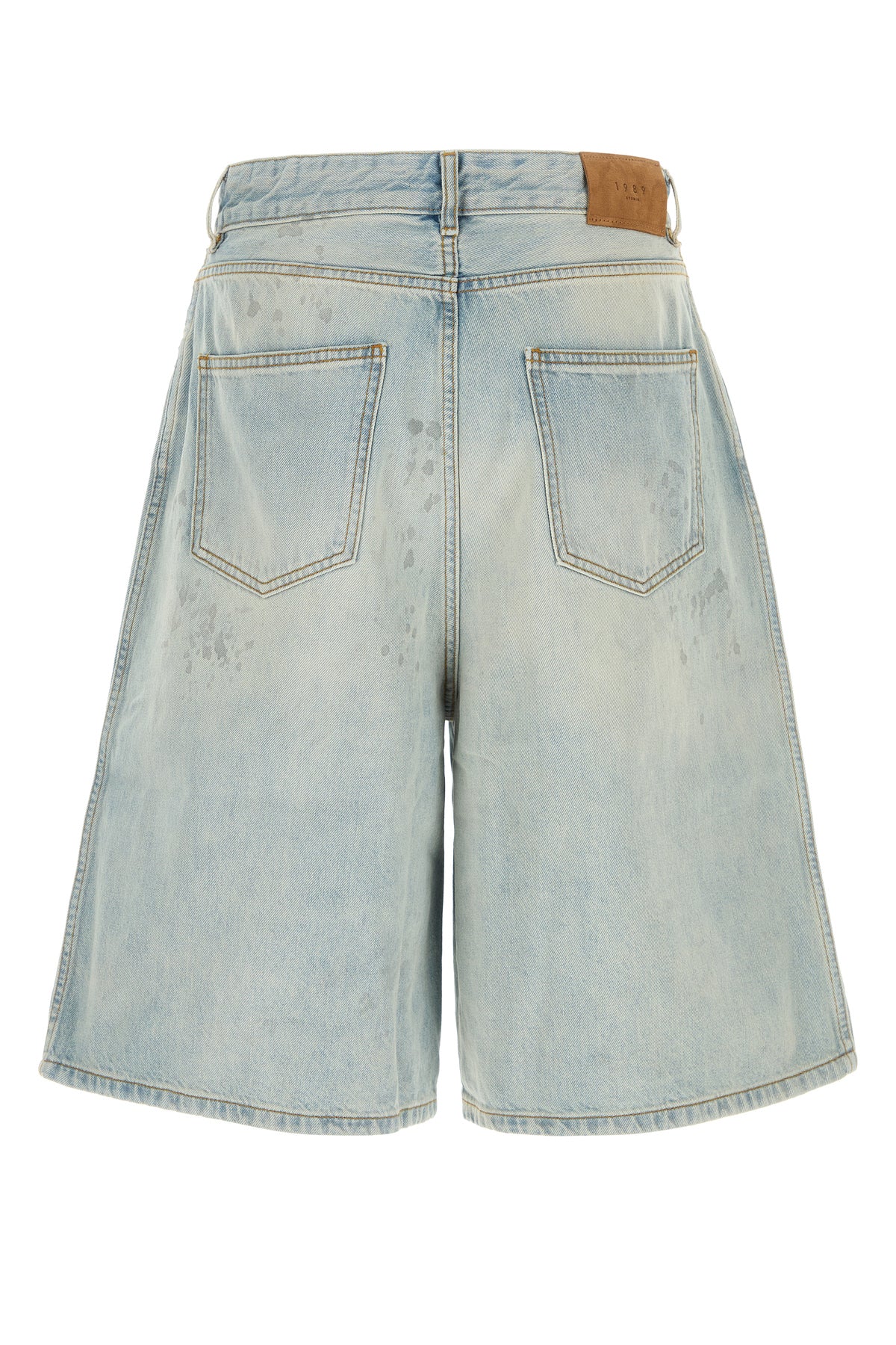 Bermuda realizzati in denim di puro cotone caratterizzati da sporcature intenzionali.