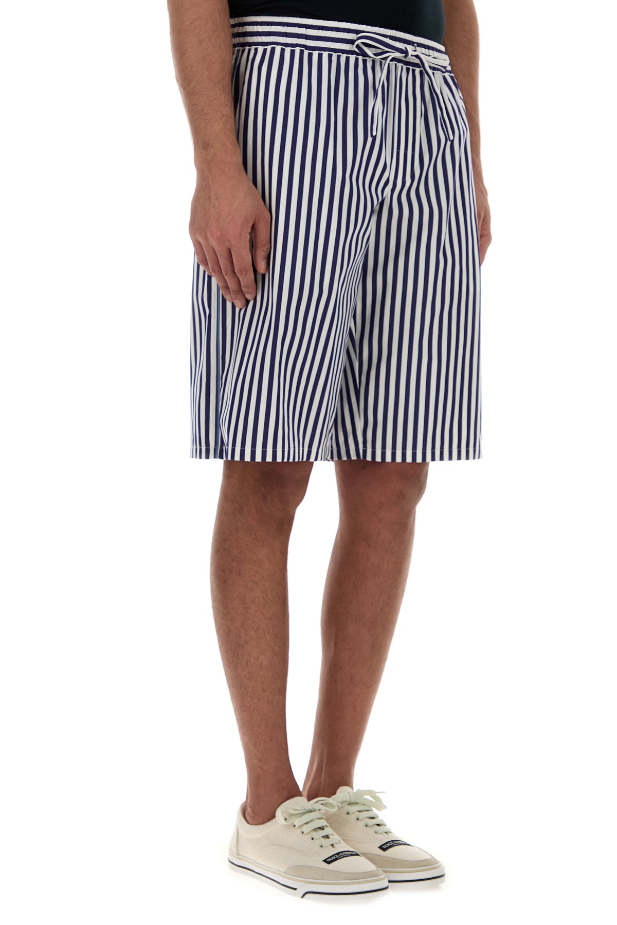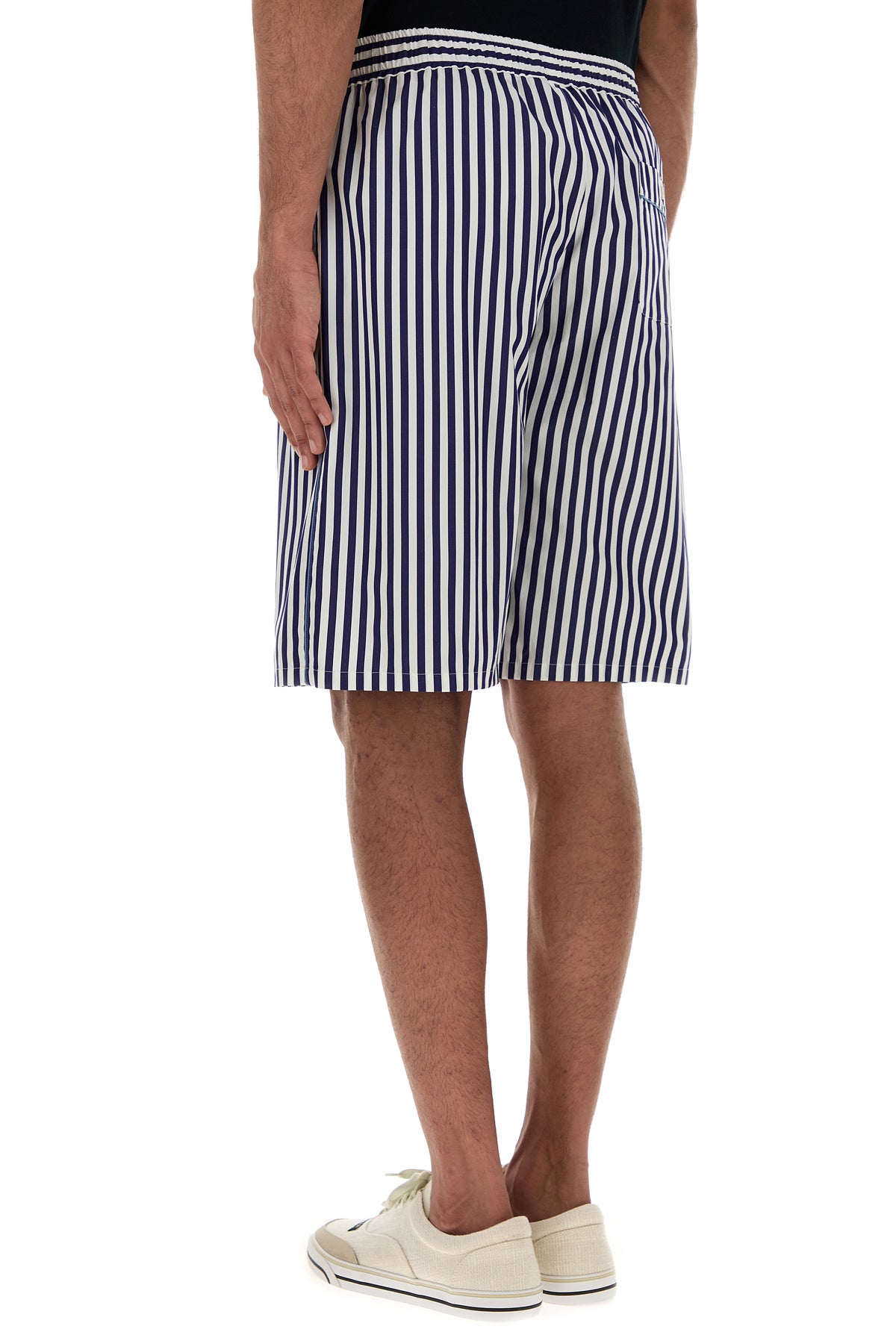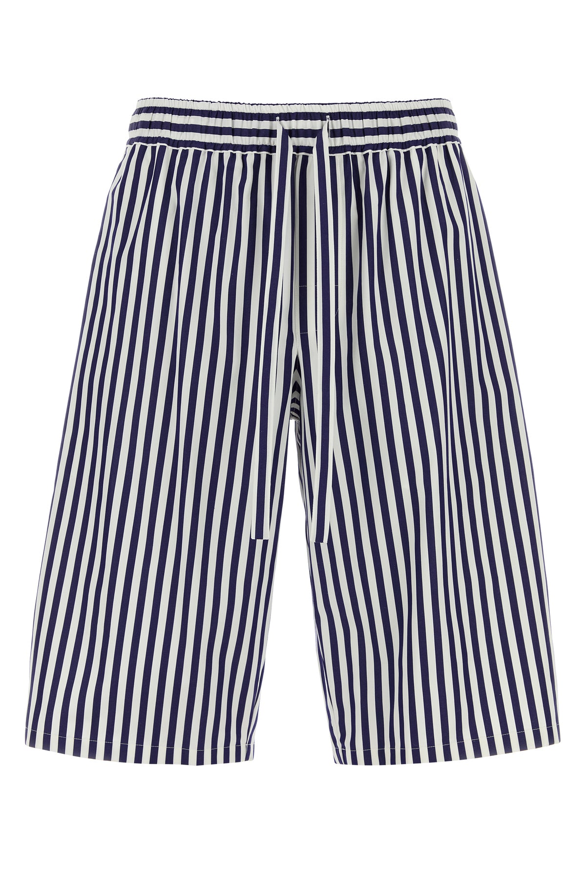Bermuda realizzati in popeline di cotone e seta caratterizzati da ricamo a righe sul tutta la superficie.