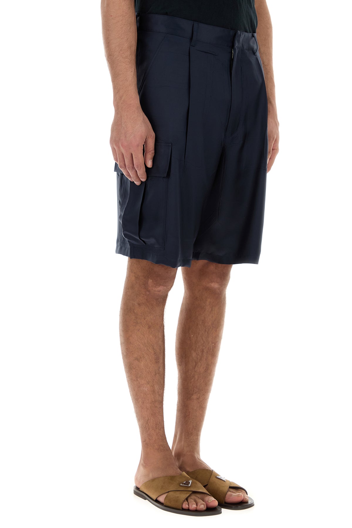 Bermuda in seta blu scuro