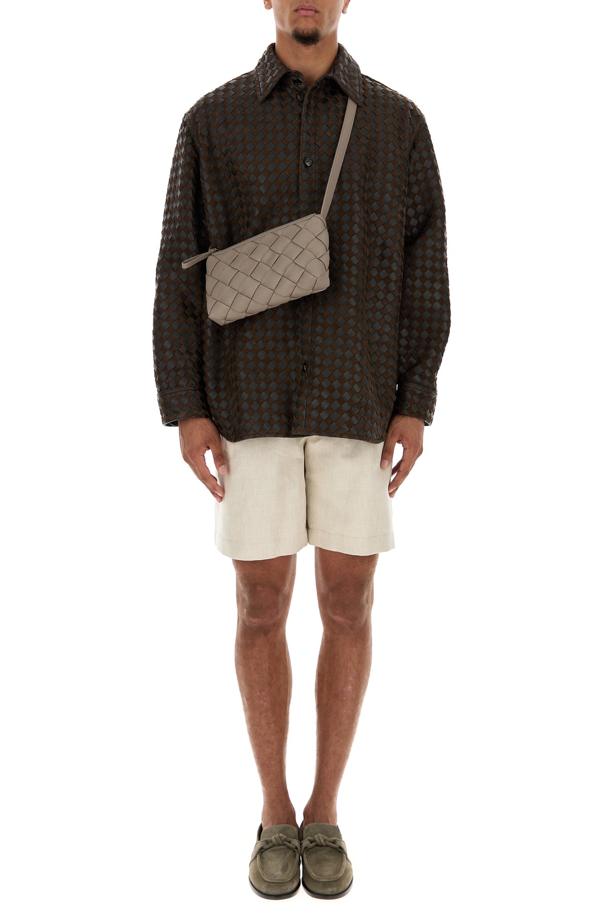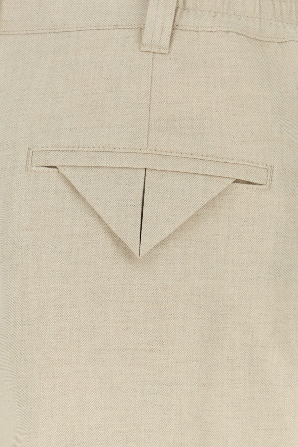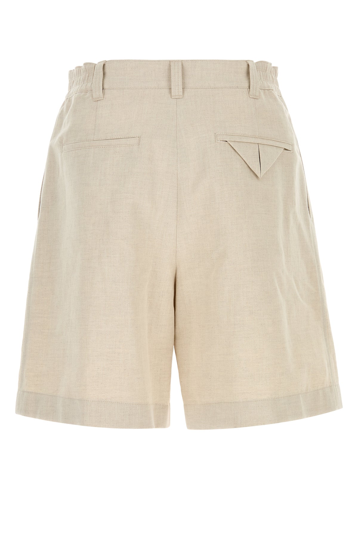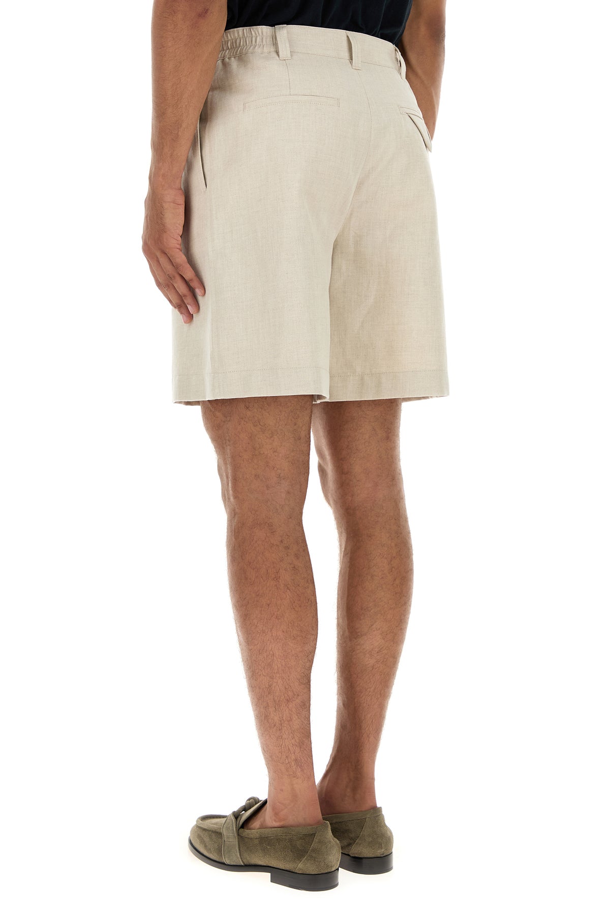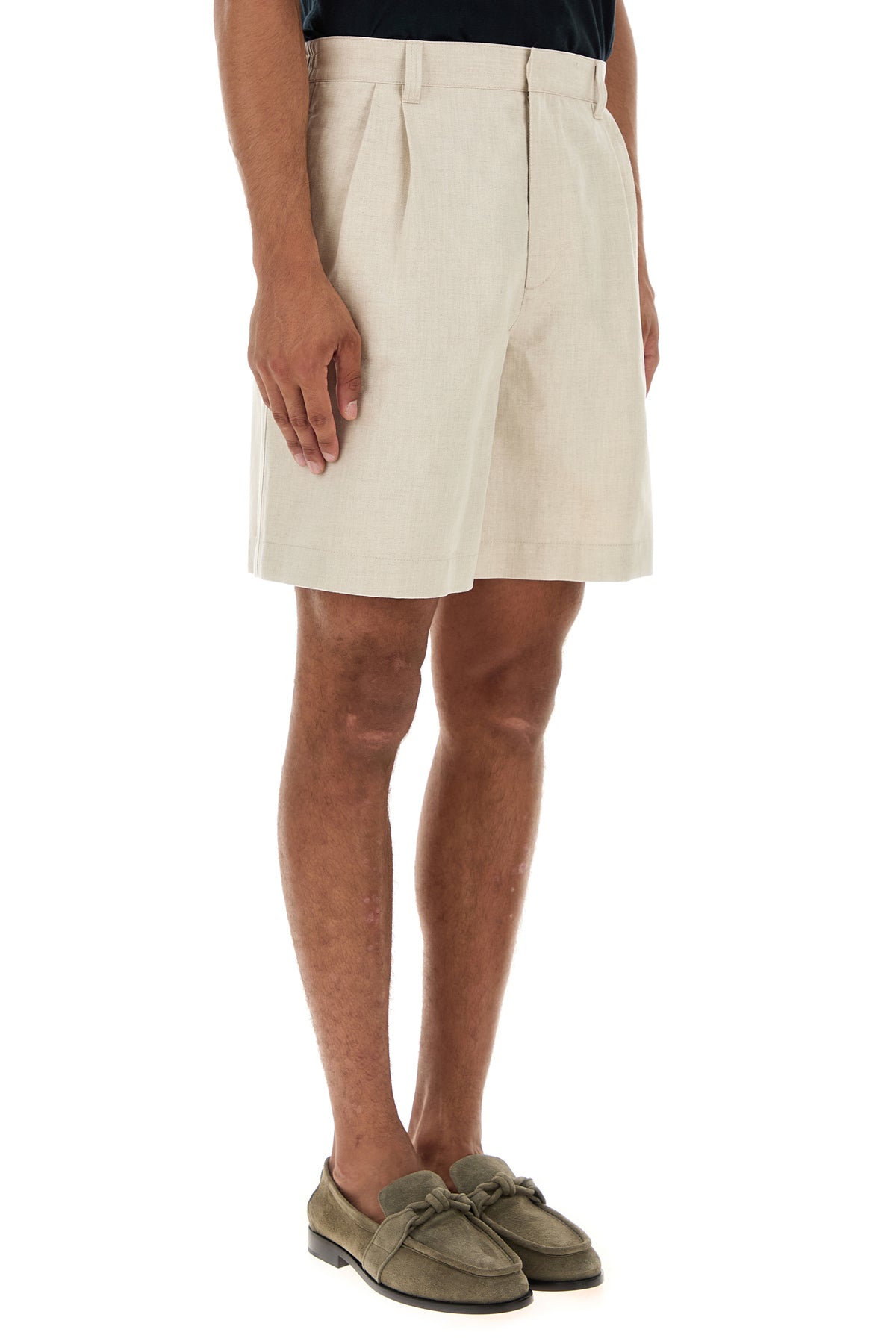 Bermuda realizzati in twill di lino e cotone caratterizzati da pieghe invertite.
