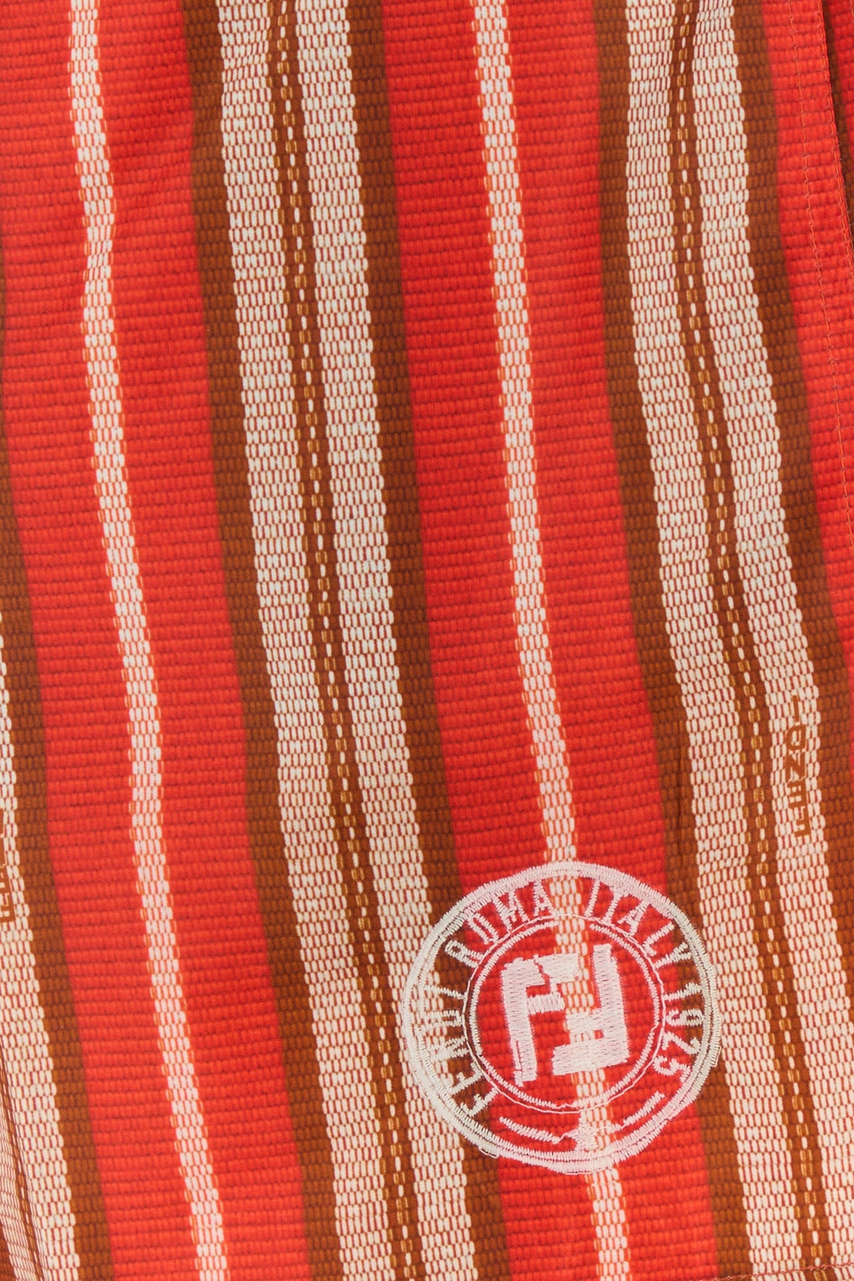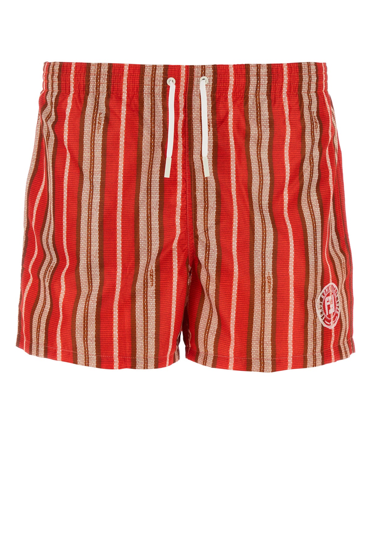 Bermuda mare realizzati in nylon stretch caratterizzati da ricamo a righe su tutta la superficie e ricamo Fendi Postcards sulla parte frontale.