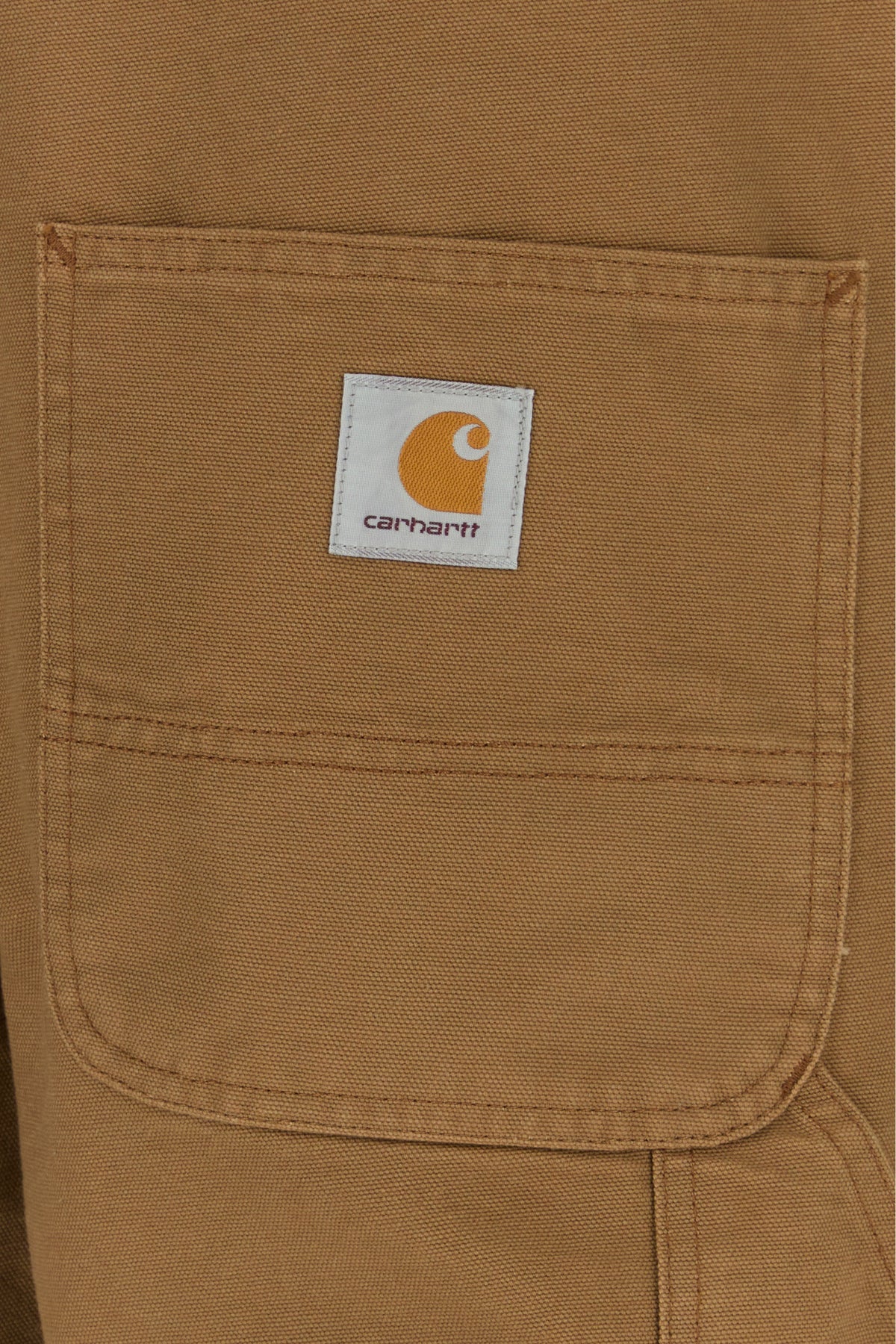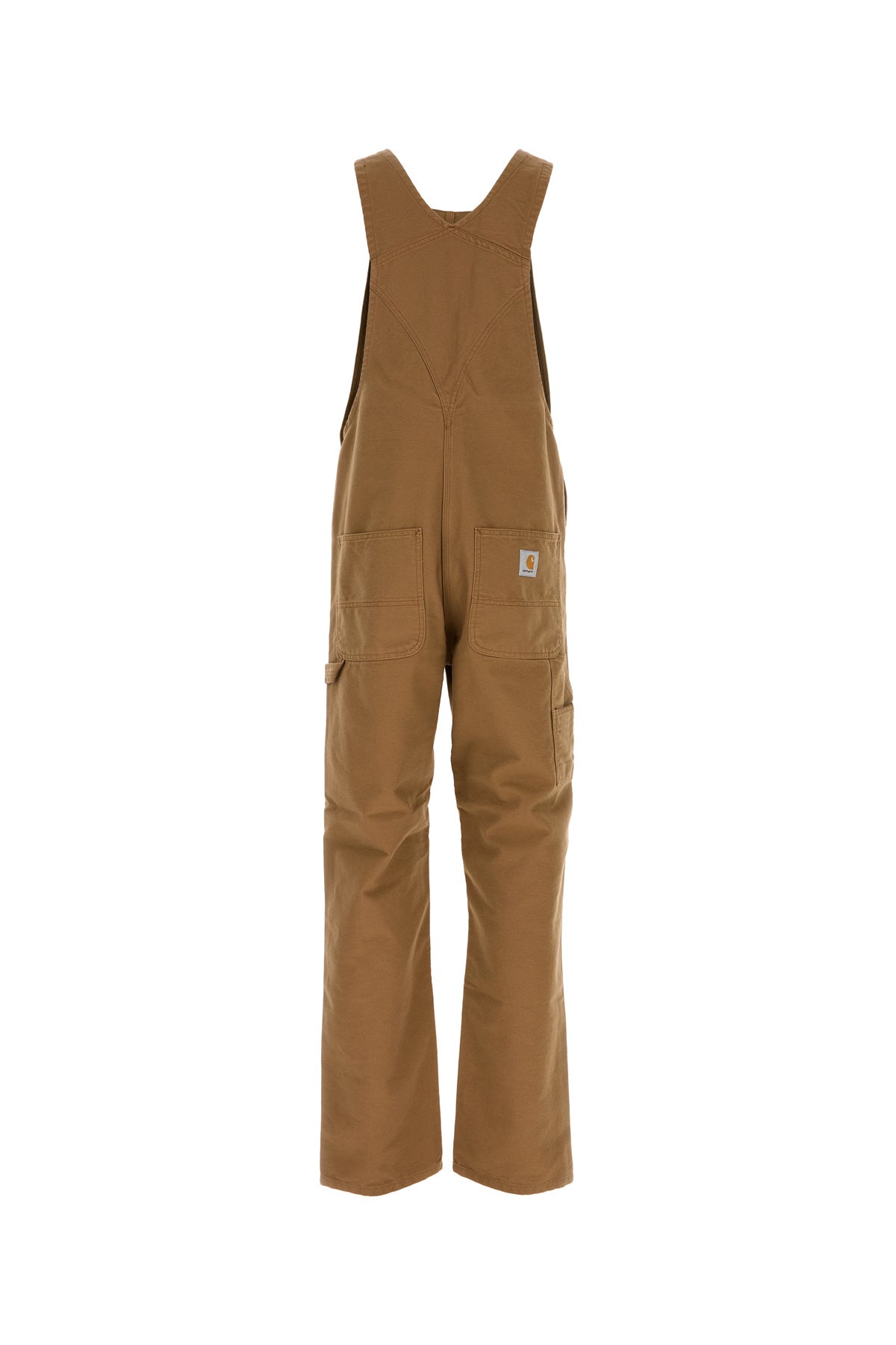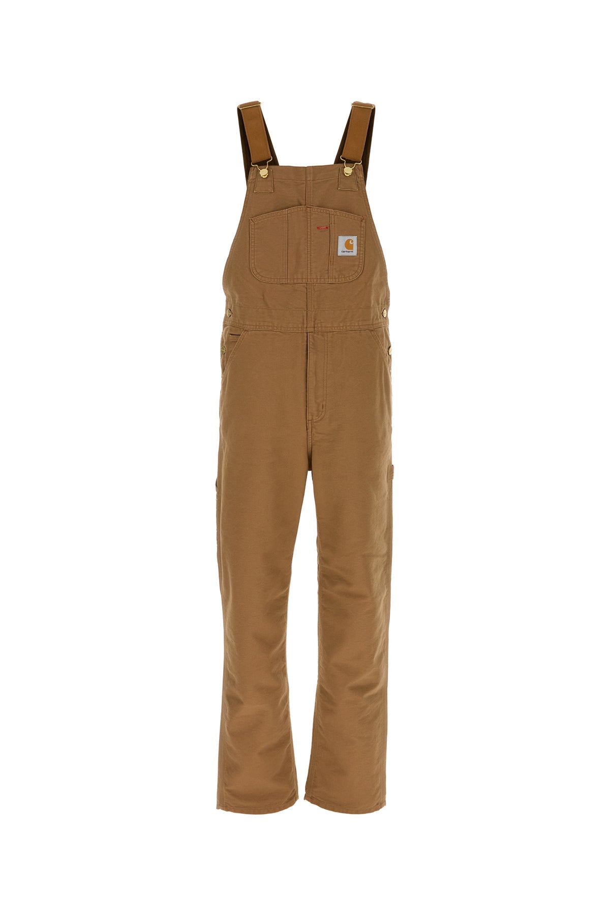Salopette realizzata in denim di puro cotone arricchita da etichetta logata a contrasto sulla parte frontale