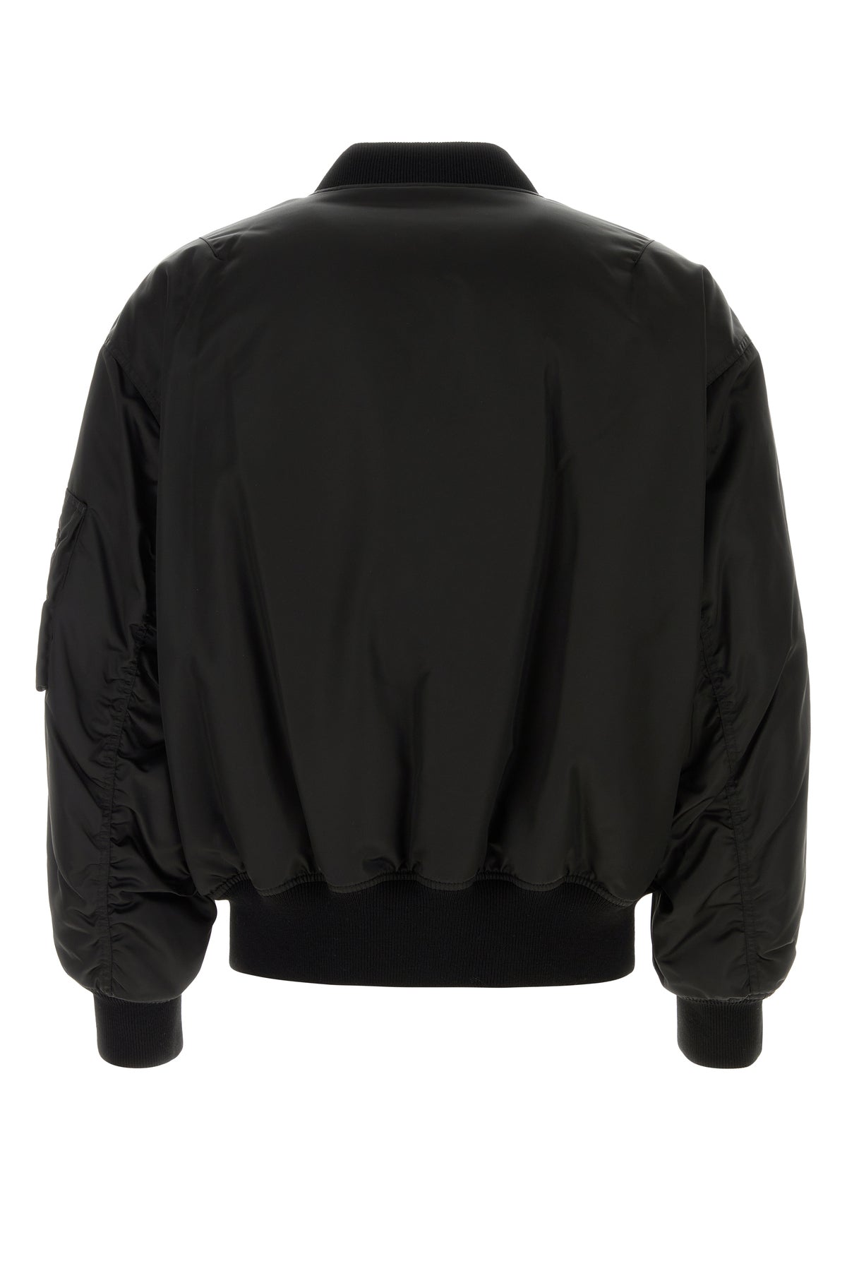 Bomber realizzato in nylon caratterizzato da girocollo, polsini e fondo a costine.