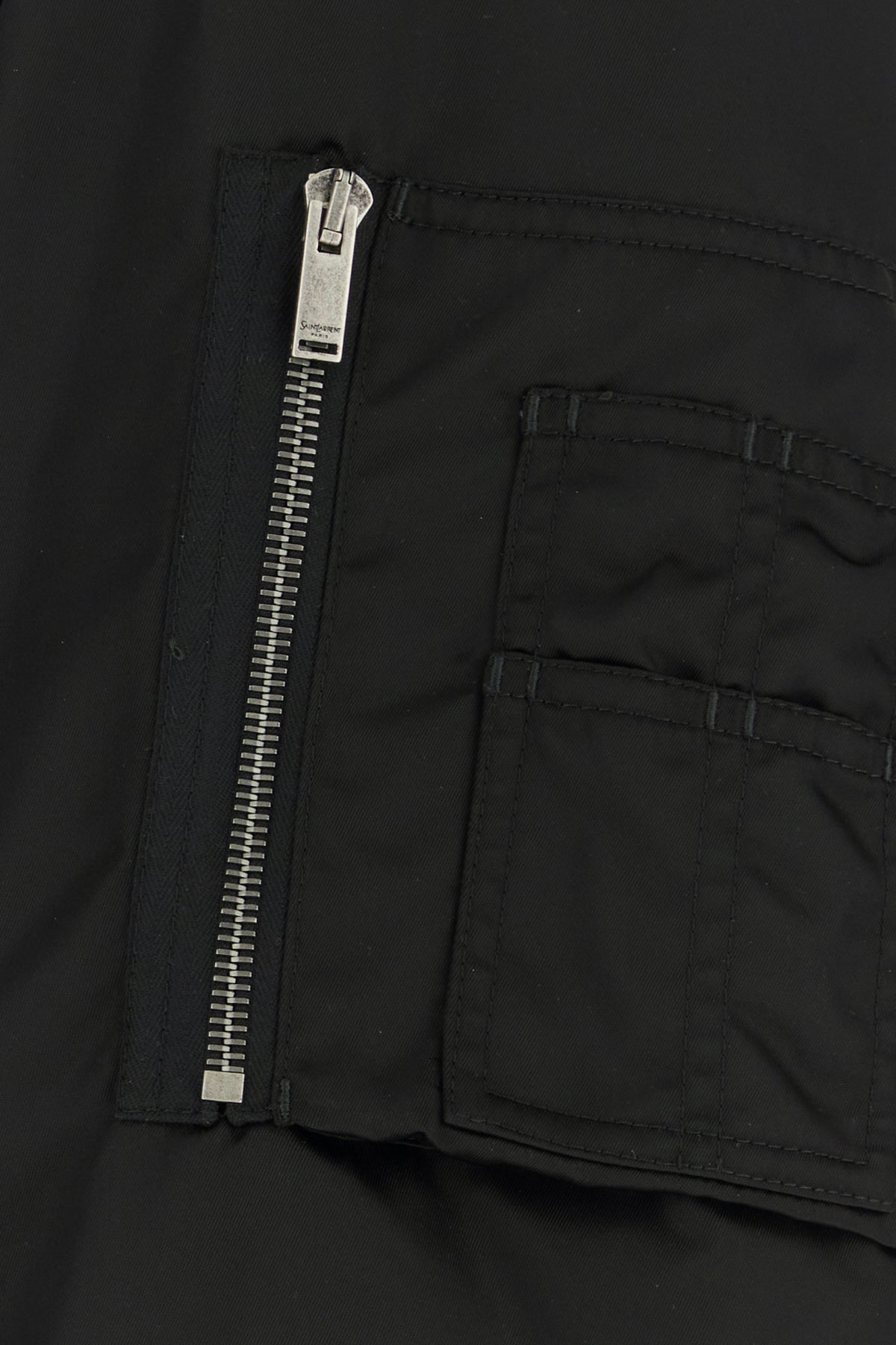 - Due tasche con patta sulla parte frontale, una tasca a zip sulla manica e quattro tasche porta penna