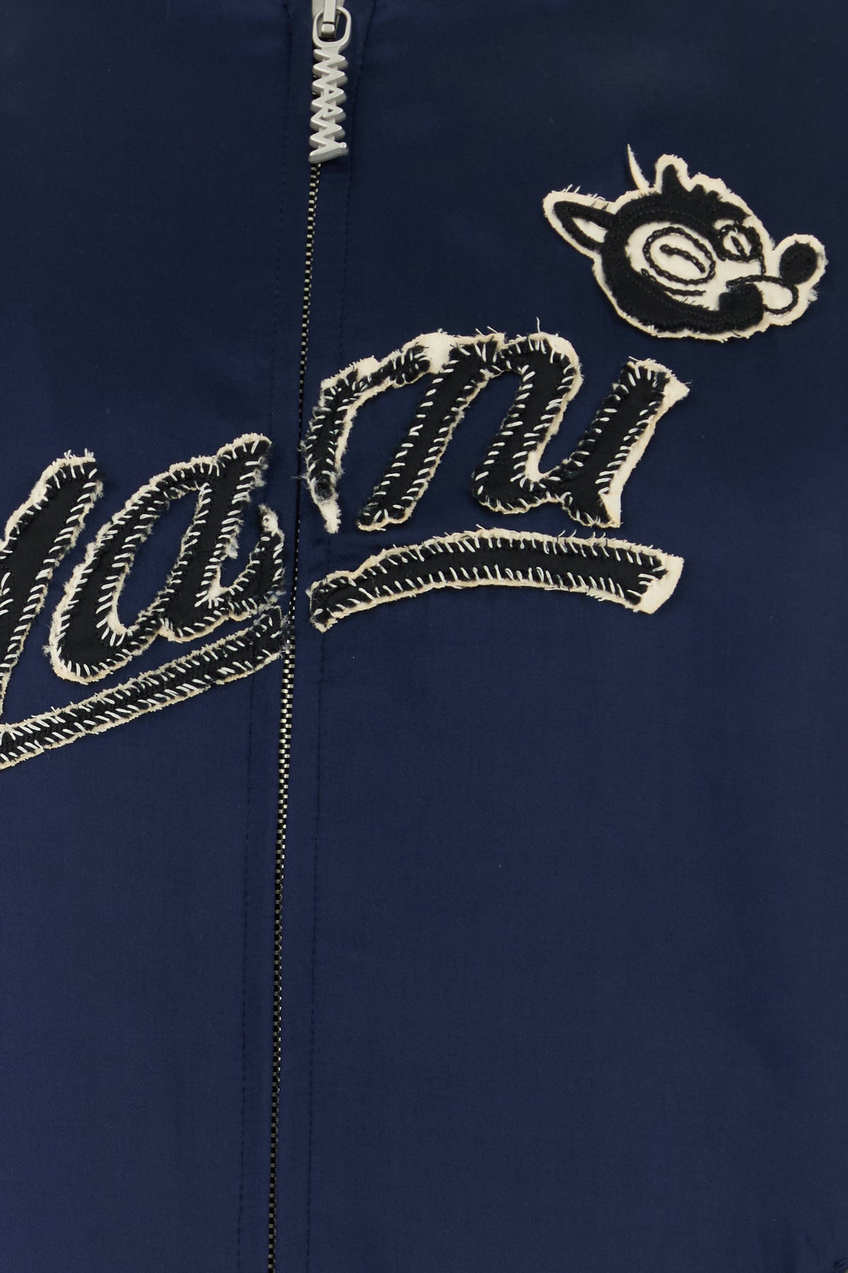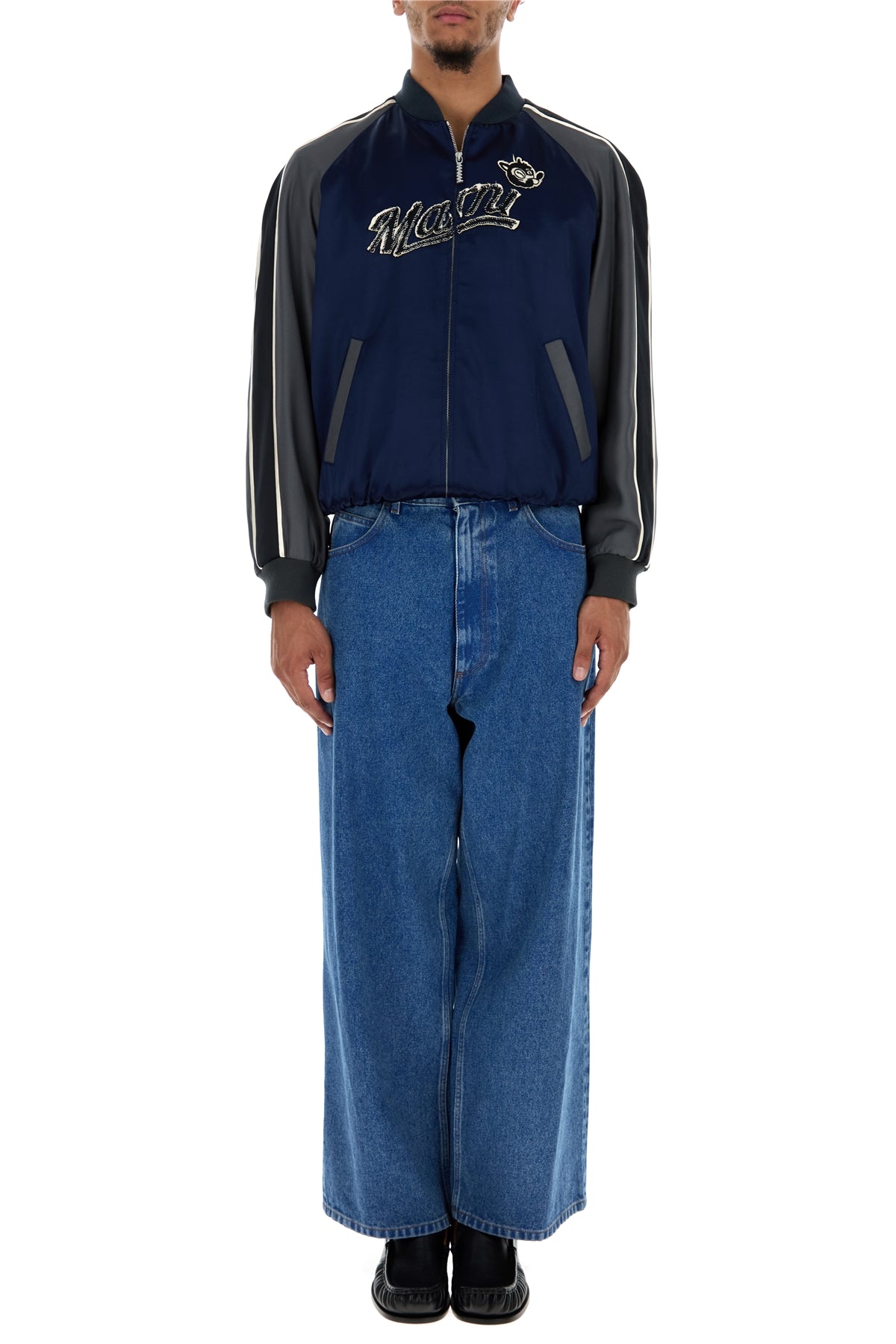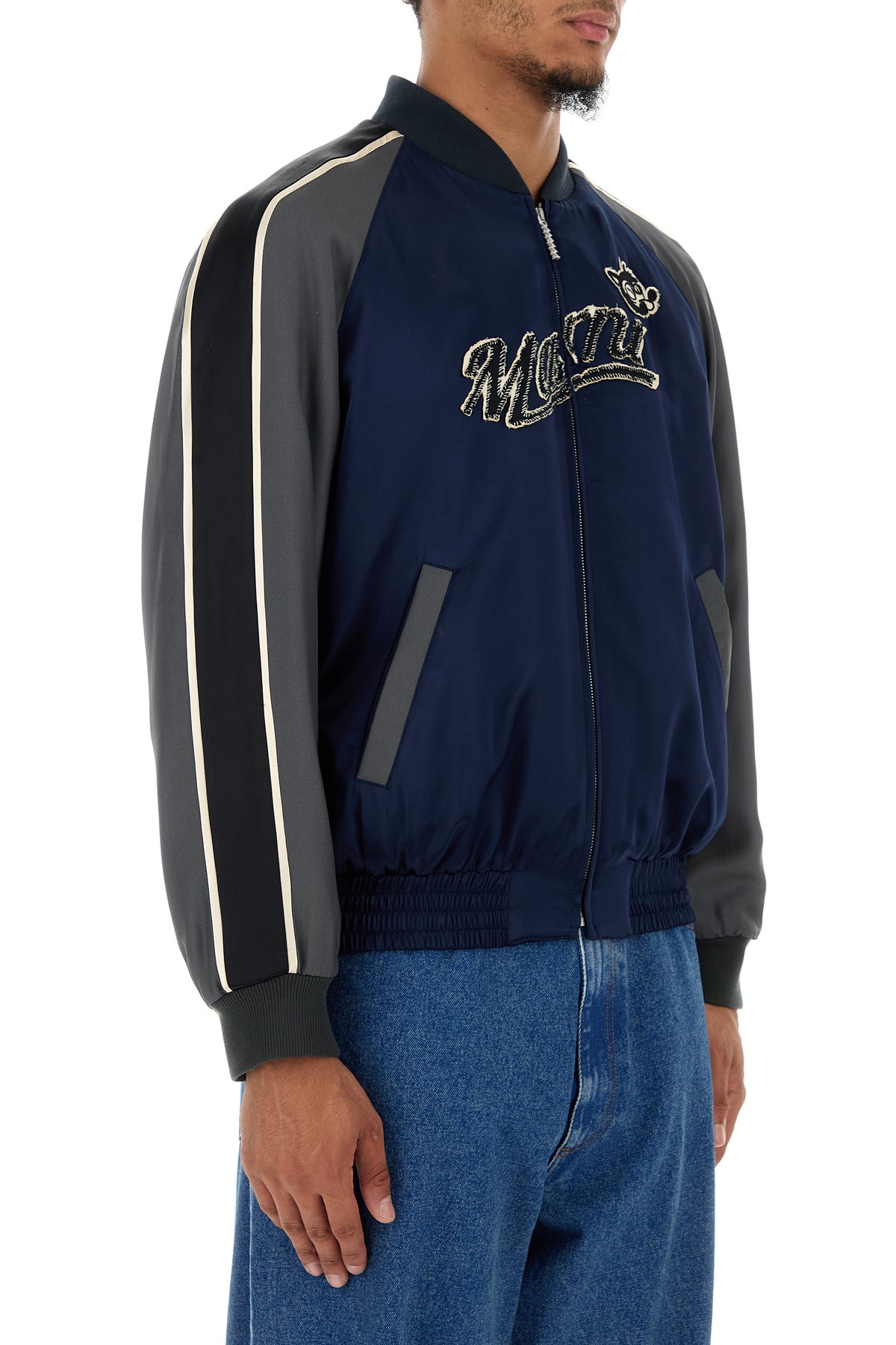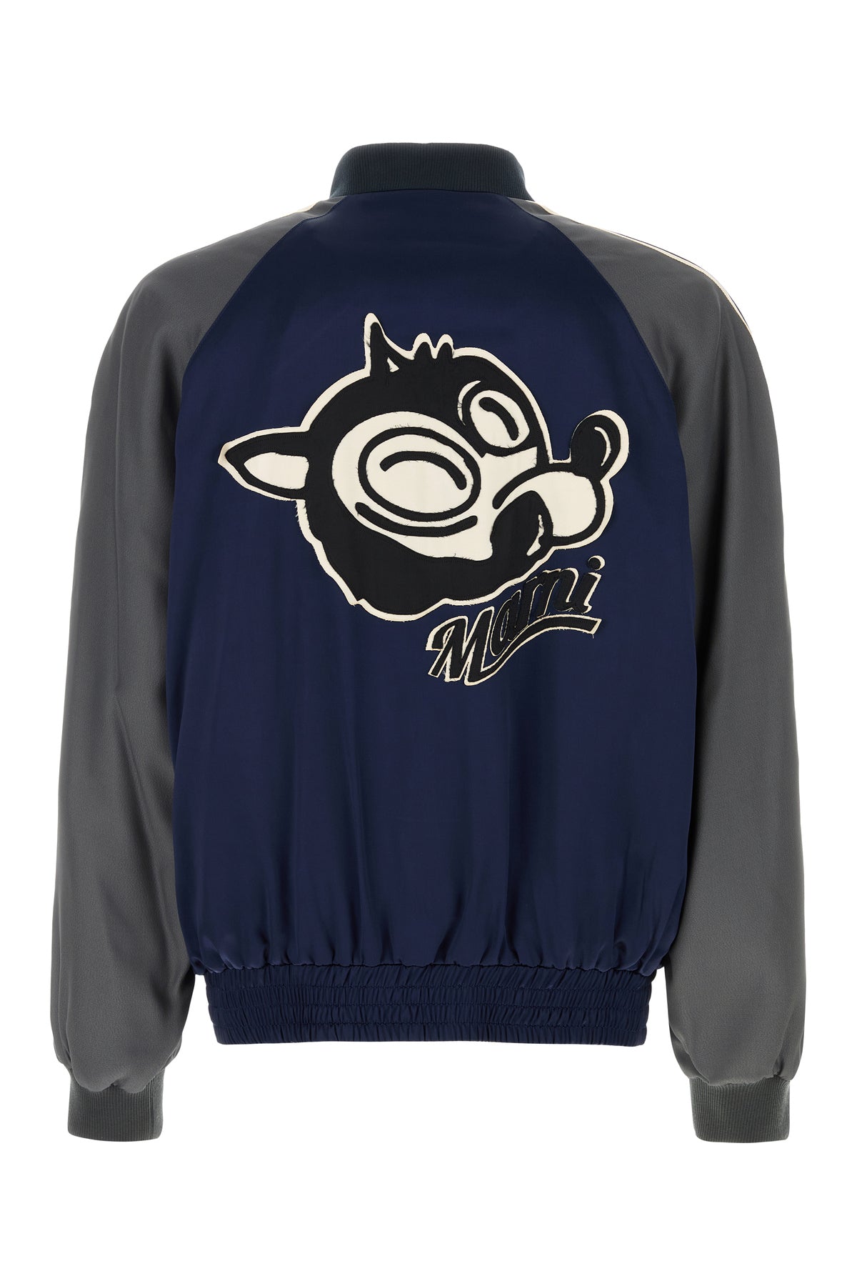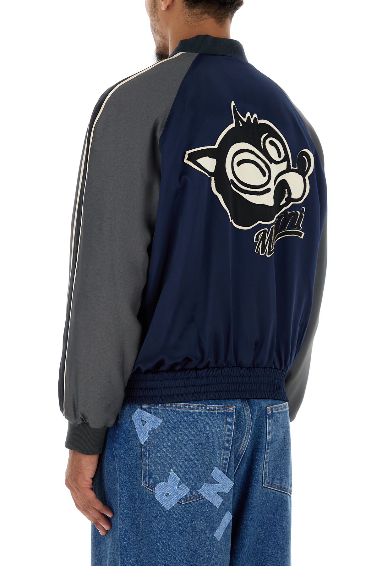 Bomber realizzato in raso arricchito da applicazione logata sul petto e sul retro.
