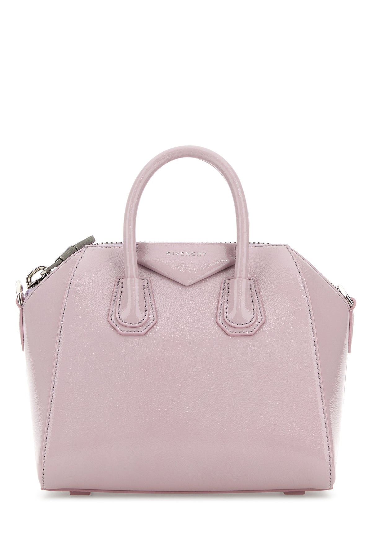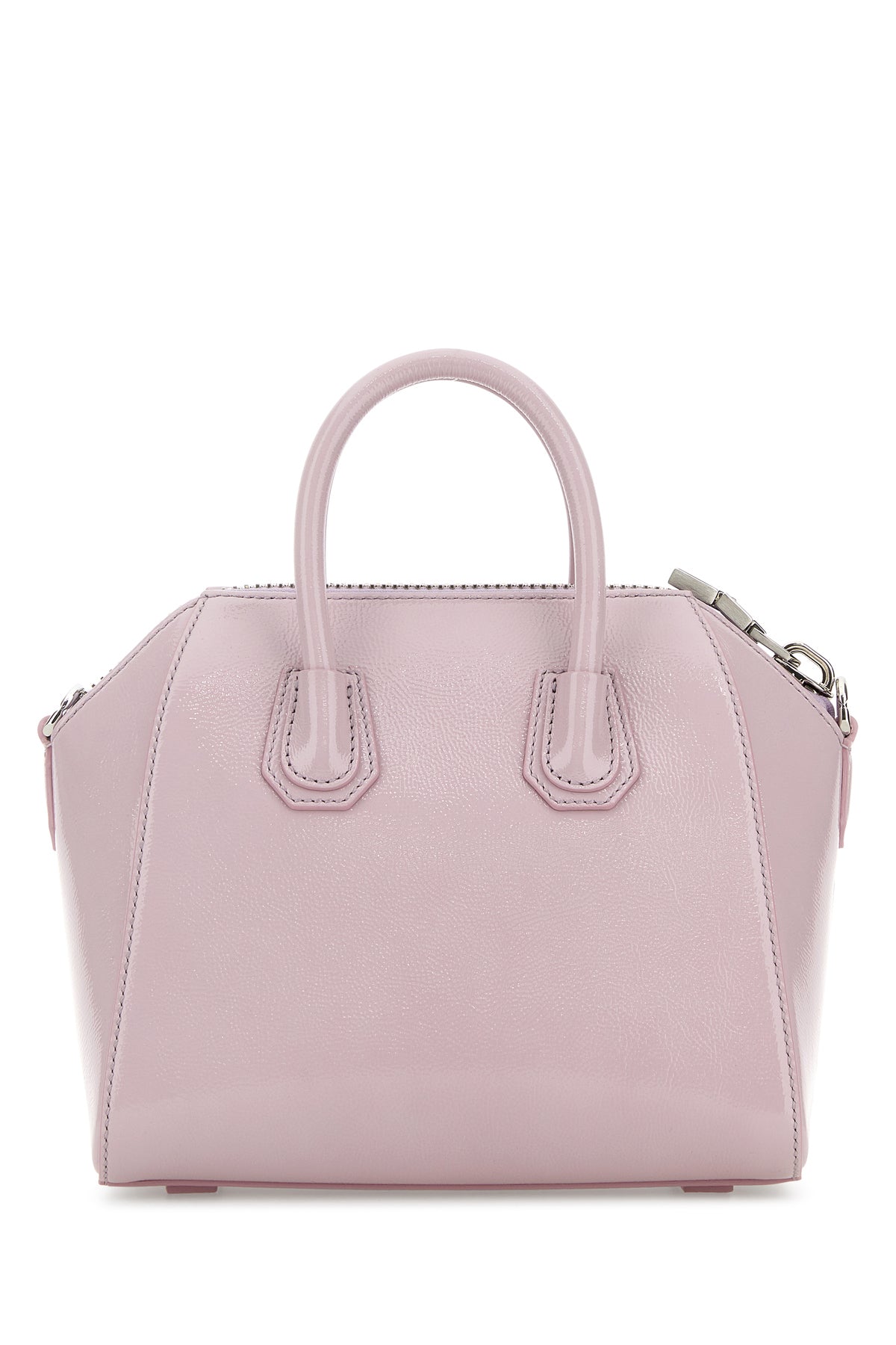 Borsa a mano realizzata in pelle di vitello martellata dal finish lucido caratterizzata da logo stampato laminato sulla parte frontale.