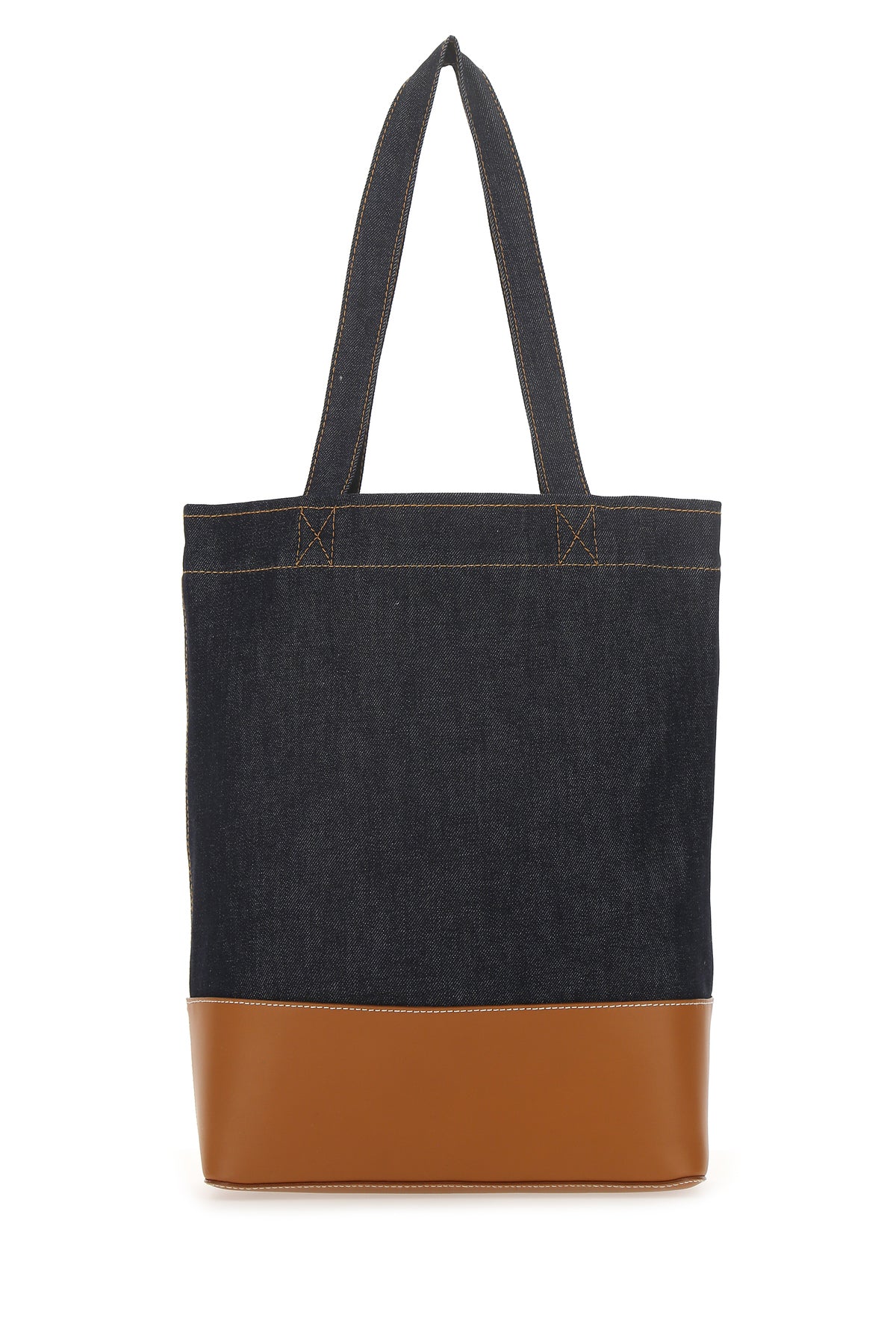 Borsa a mano realizzata in denim con inserto in pelle caratterizzata da logo stampato a contrasto sulla parte frontale.