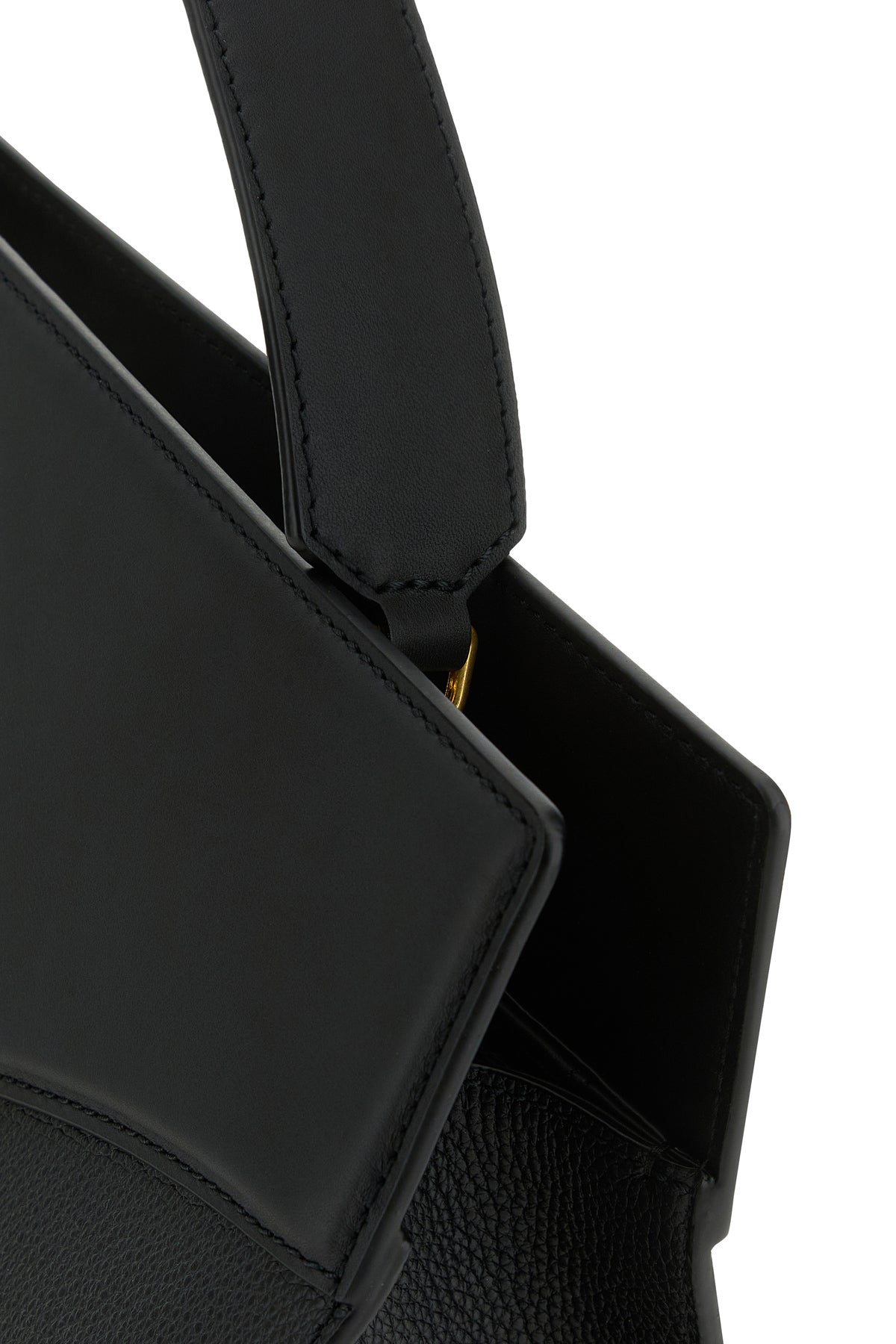Borsa a mano realizzata in pelle martellata e liscia caratterizzata da stampa MCM laminata sulla parte frontale.