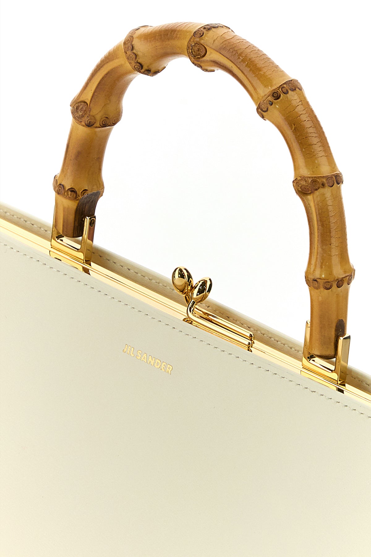Borsa a mano Goji Frame Bamboo piccola in pelle avorio