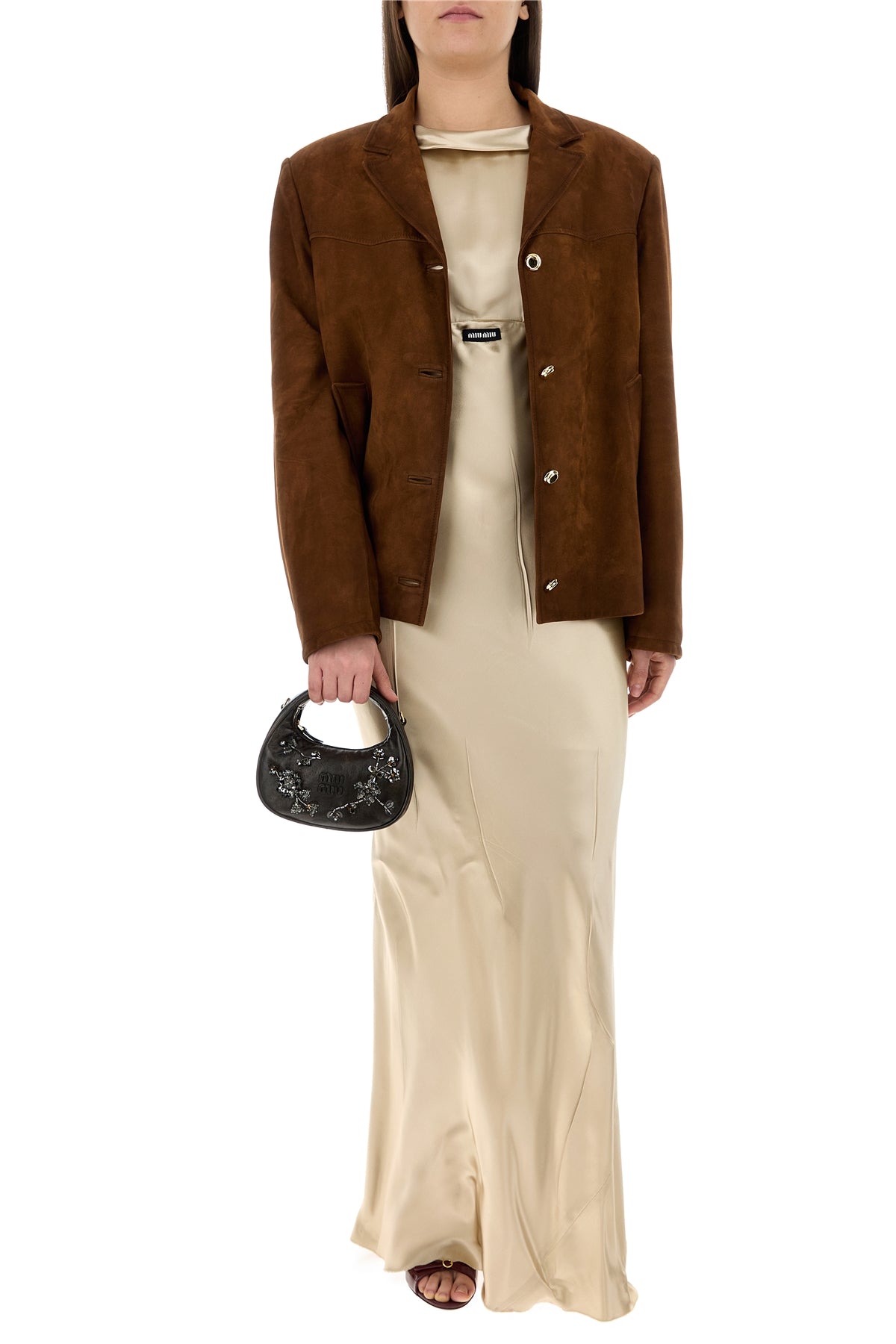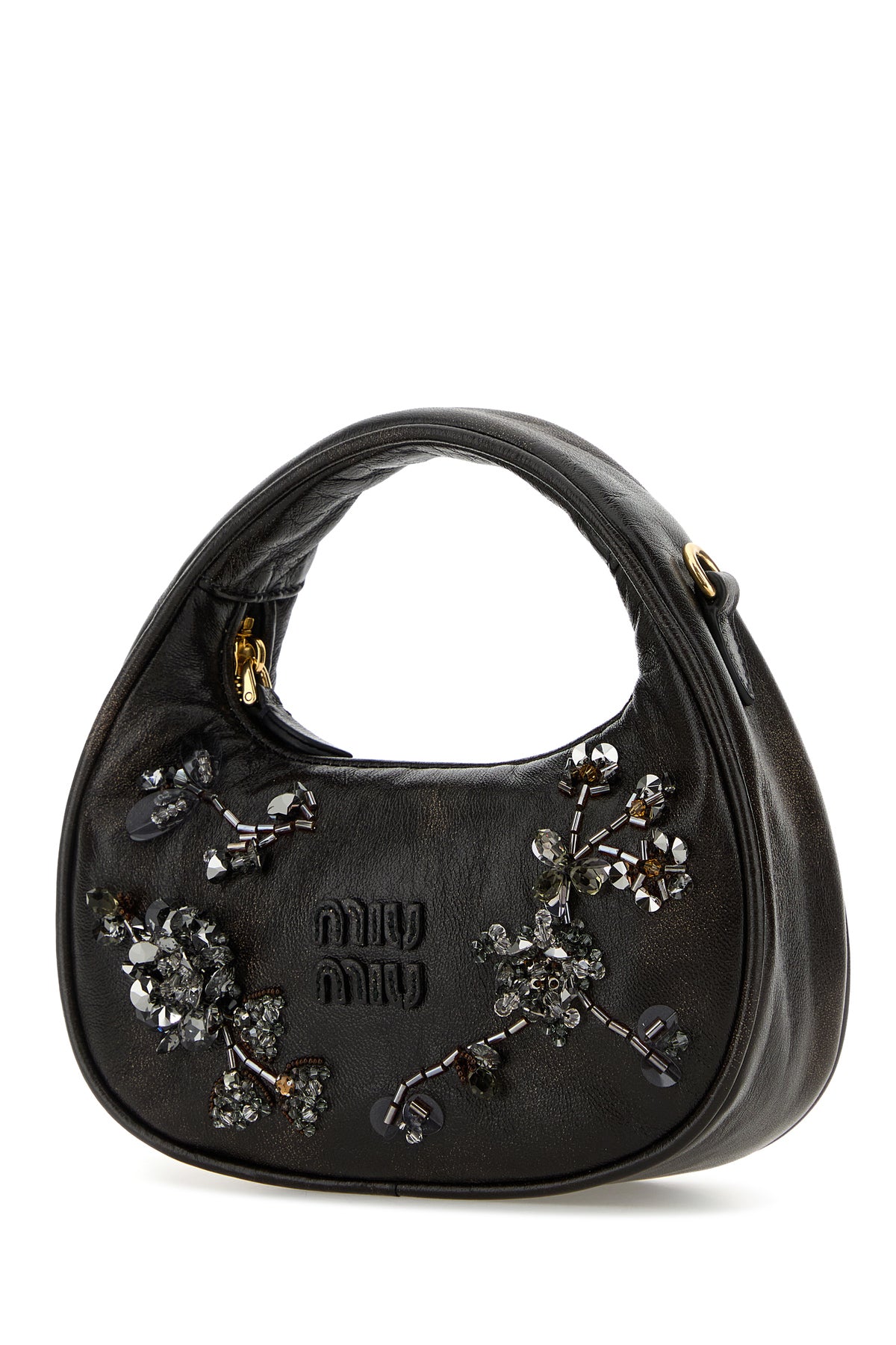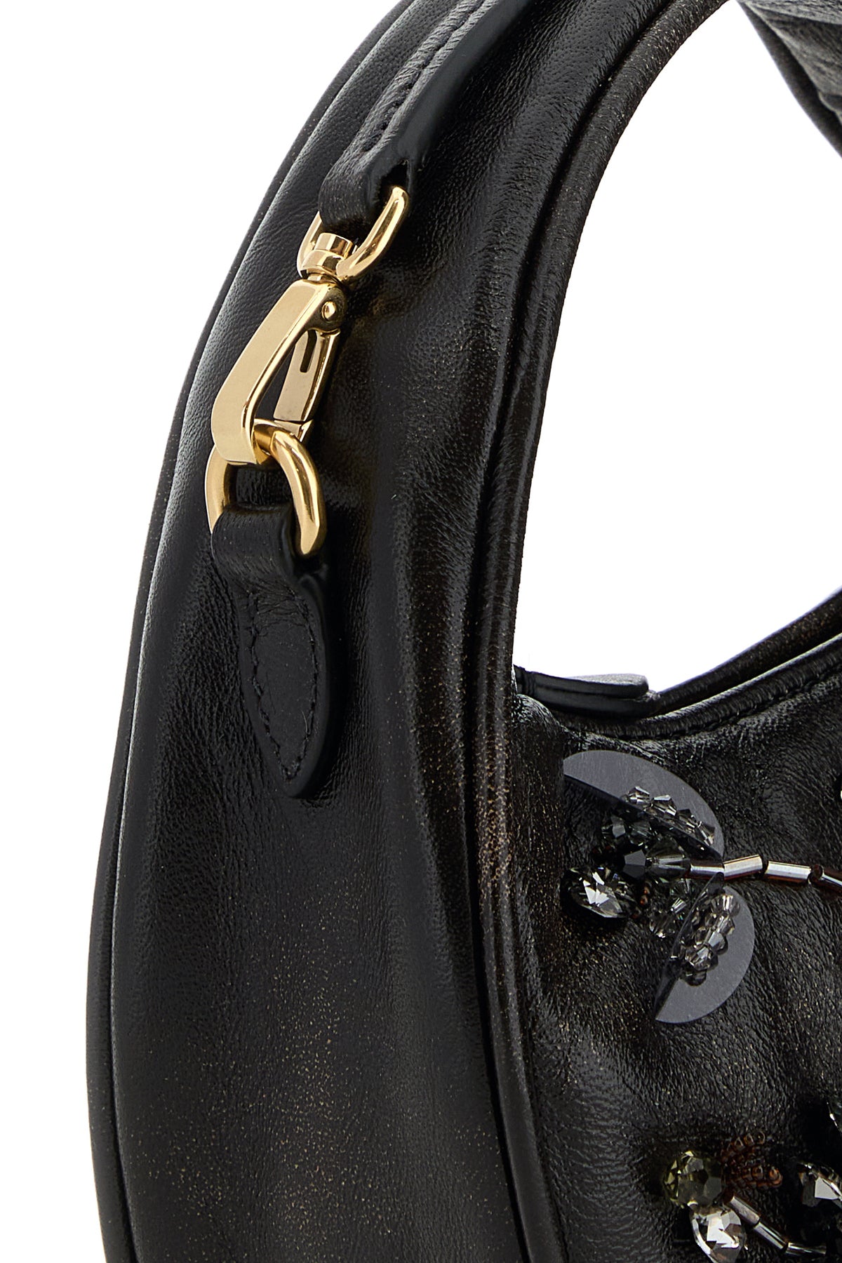 Borsa a mano realizzata in nappa ad effetto vintage arricchita da decorazioni gioiello e applicazione logata sulla parte frontale.