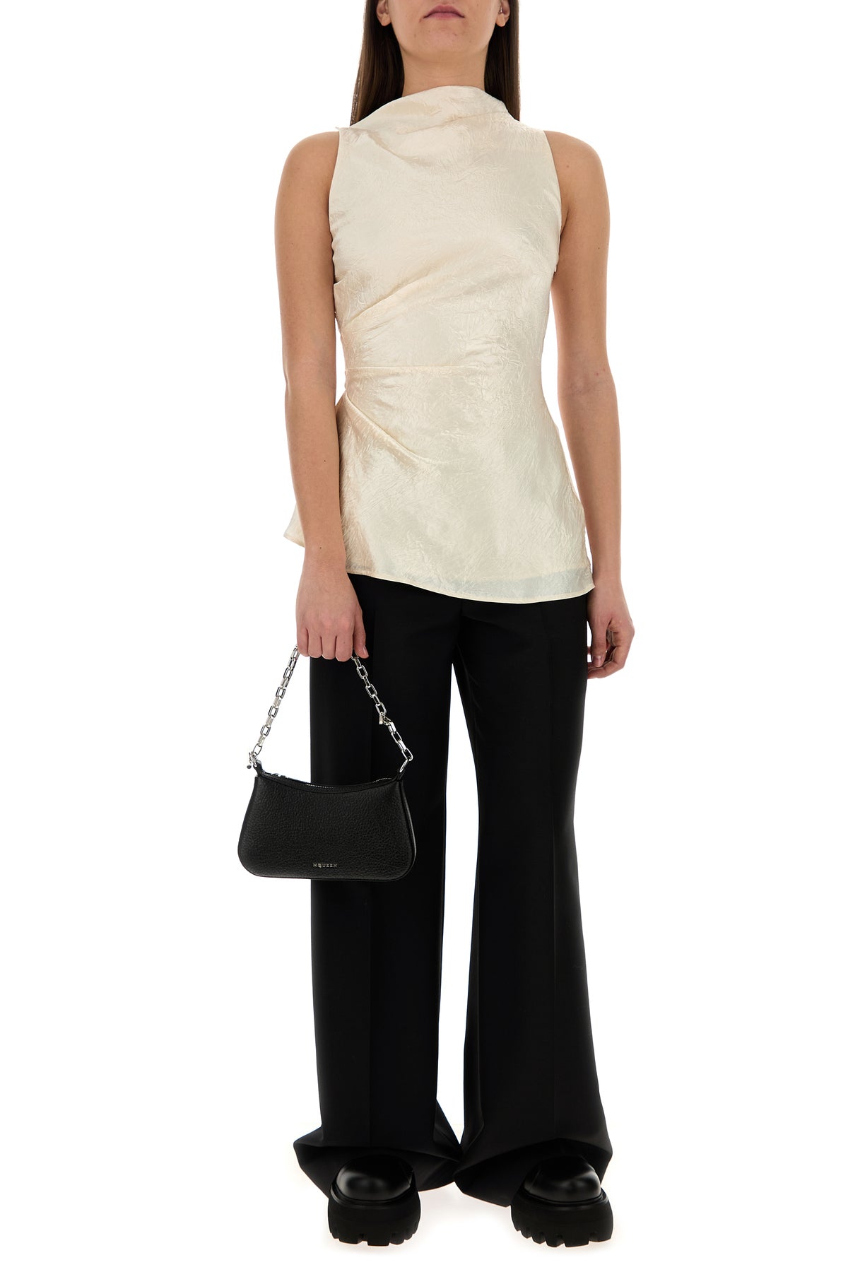 Borsa a mano realizzata in pelle di agnello martellata arricchita da logo in lettere metalliche sulla parte frontale.