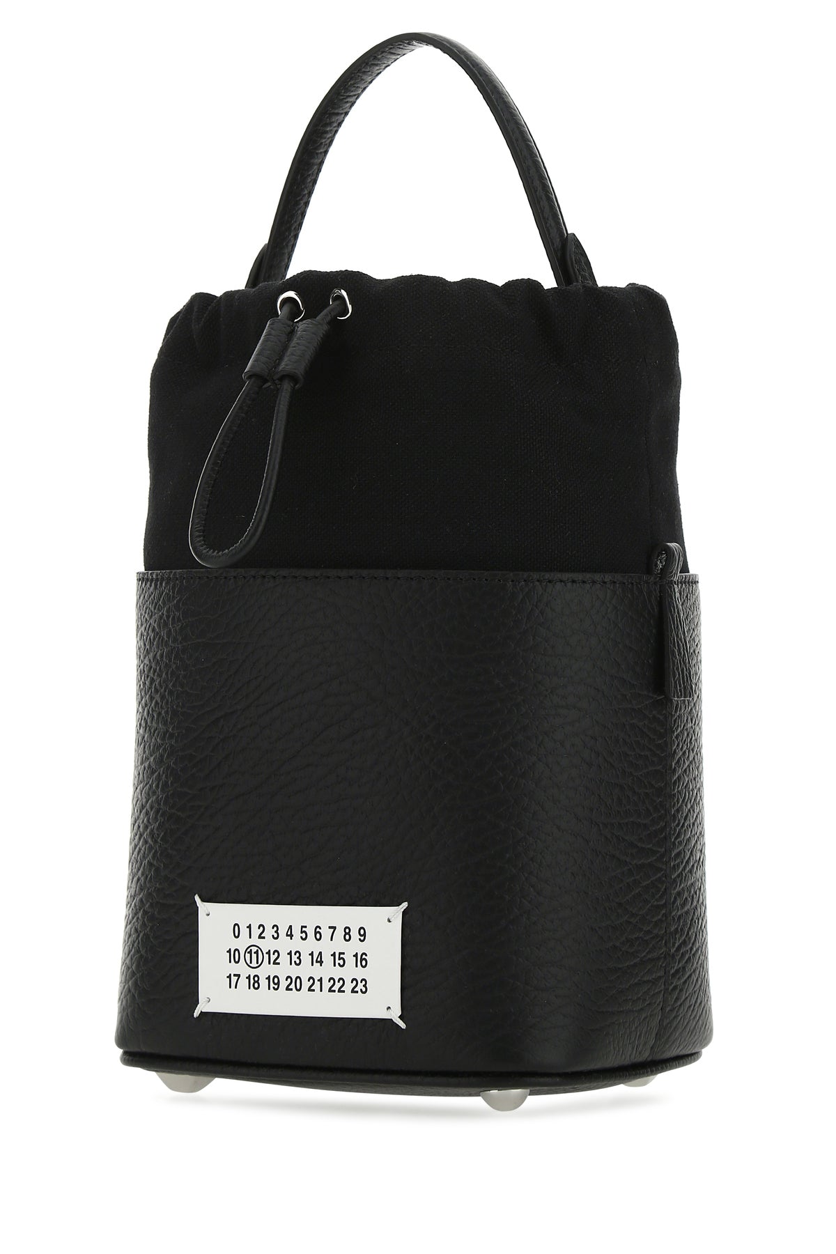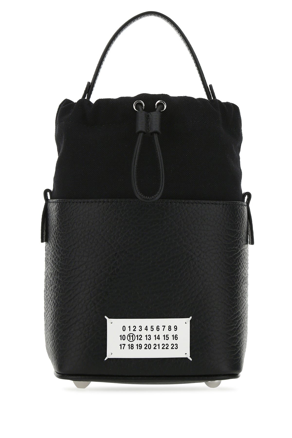 Borsa a secchiello 5AC mini nera in pelle e tela